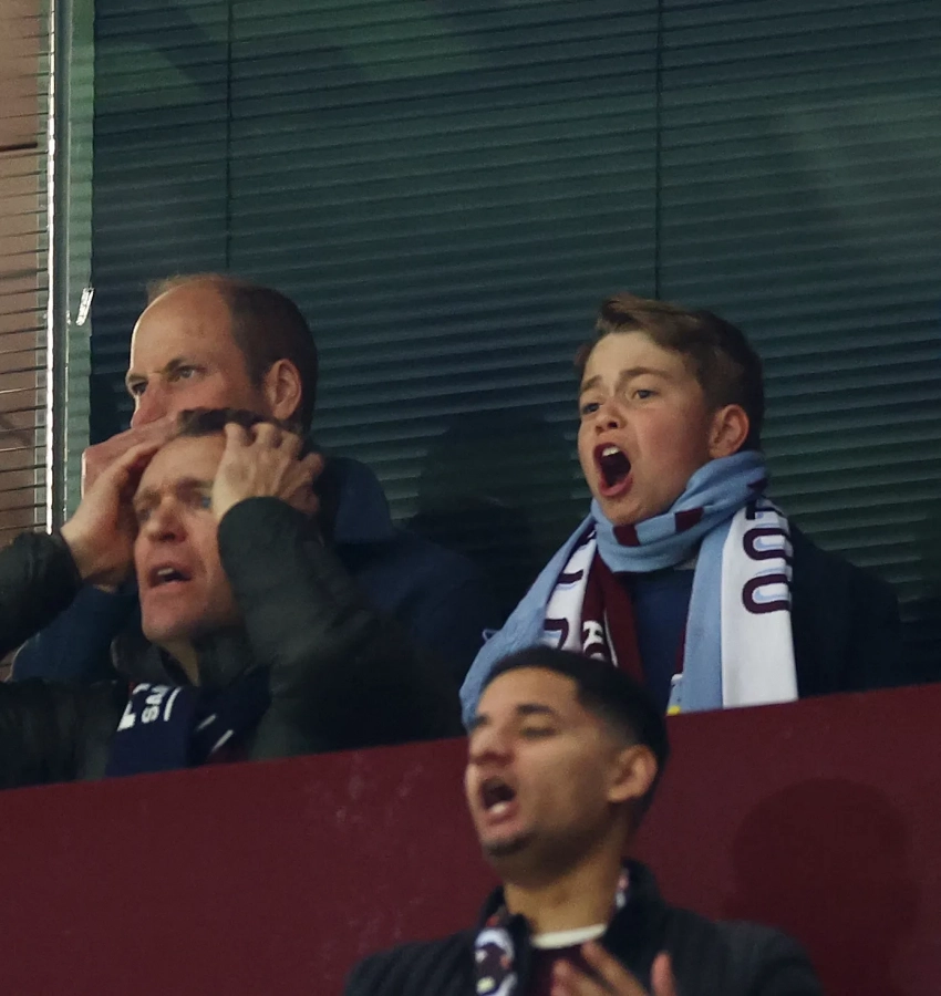 Принц Уильям и принц ДжорджПринц Уильям и принц ДжорджПринц ДжорджНаследник британского престола, старший сын Уильяма и Кейт Миддлтон принц Джордж, разделяет страсть отца к футболу. На трибуне он активно болел за команду в фирменном шарфе, и на этот раз "Астон Вилла" одержала победу со счётом 3:2.