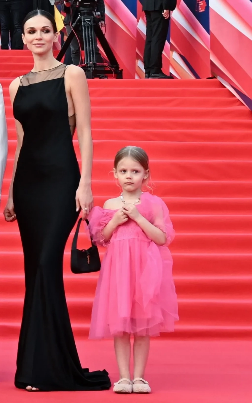 Актриса позировала фотографам в облегающем чёрном платье и с сумкой Saint Laurent, а Мия была одета в ярко-розовое платье и плюшевые балетки. Отца девочки на церемонии открытия не было.