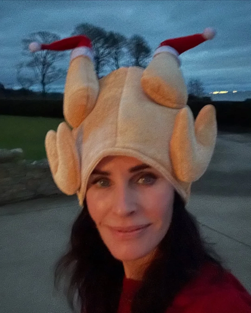 Звёзды собрались в ресторане, а компанию им составил возлюбленный Кортни Кокс, 48-летний музыкант Джонни Макдейд. На снимке Дженнифер Энистон позирует рядом с Джонни, а Кортни сидит напротив их. Кокс также опубликовала новое фото с 20-летней дочерью Коко, крестницей Дженнифер Энистон, и селфи в шапке в виде индейки.