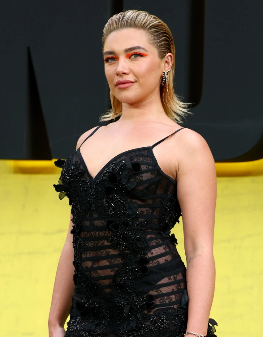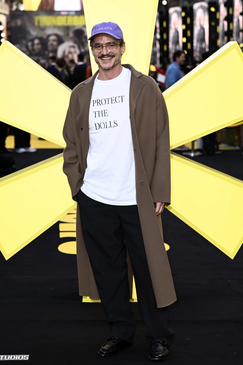29-летняя Флоренс Пью, сыгравшая в ленте главную роль — Чёрную Вдову Елену Белову, — появилась на дорожке в полупрозрачном платье Elie Saab. Образ актрисы дополнили укладка с эффектом мокрых волос и макияж в оранжевых оттенках. 50-летний Педро Паскаль позировал в футболке с принтом Protect the Dolls (в переводе — "Защитите кукол") бренда Connor Ives в поддержку прав транссексуалов*.