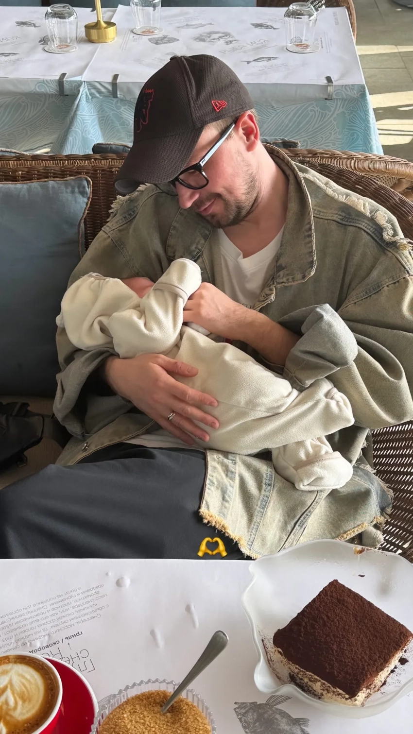 36-летний Александр Петров и его 24-летняя супруга Виктория, которые накануне впервые вышли в свет после рождения сына, показали новое фото с ребёнком. На снимке, опубликованном Викторией в соцсетях, российский актёр сидит в ресторане и держит новорождённого Фёдора на руках.