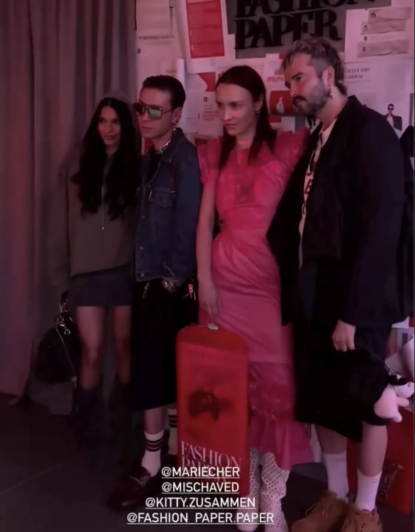 Вчера в московской галерее Гари Татинцяна прошла презентация первого номера новой газеты о моде от Мадонны Мур Fashion Paper. Светский вечер посетили: Елена Крыгина, Оксана Рим, Алексей Сухарев, Снежанна Георгиева, Асмат Чкотуа, Миша и Китти, основательница агентства Lumpen Авдотья Александрова и её возлюбленный Александр Гриднёв, Лина Дембикова, Олег Горчанин, Севиль, Екатерина Конасова, Ксения Дукалис, Мария Червоткина, Рома Уваров и многие другие.