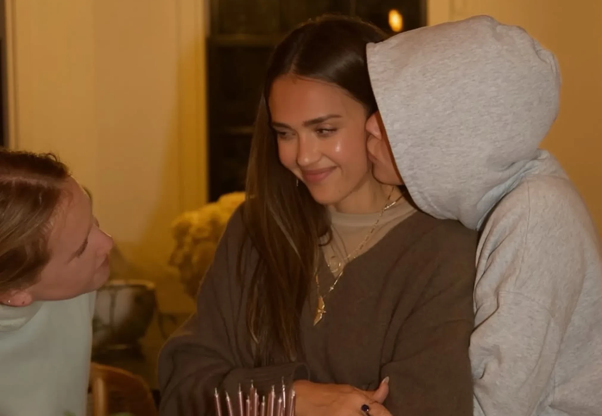 На кадрах именинница отмечает день рождения дома с двумя дочерьми, 16-летней Онор и 13-летней Хэвен, и семилетним сыном Хэйесом. Дети приготовили для Джессики каждый по торту и вынесли десерты по очереди вместе со зажжёнными свечами.