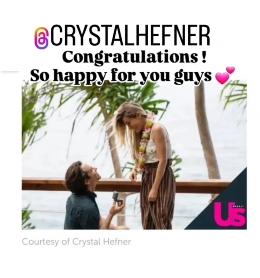 Кристал Хефнер с женихомКристал Хефнер с женихомРанее она высказалась в подкасте Hit Network Carrie and Tommy о Леонардо ДиКаприо, который, по её словам, "превращается в нового Хефа".