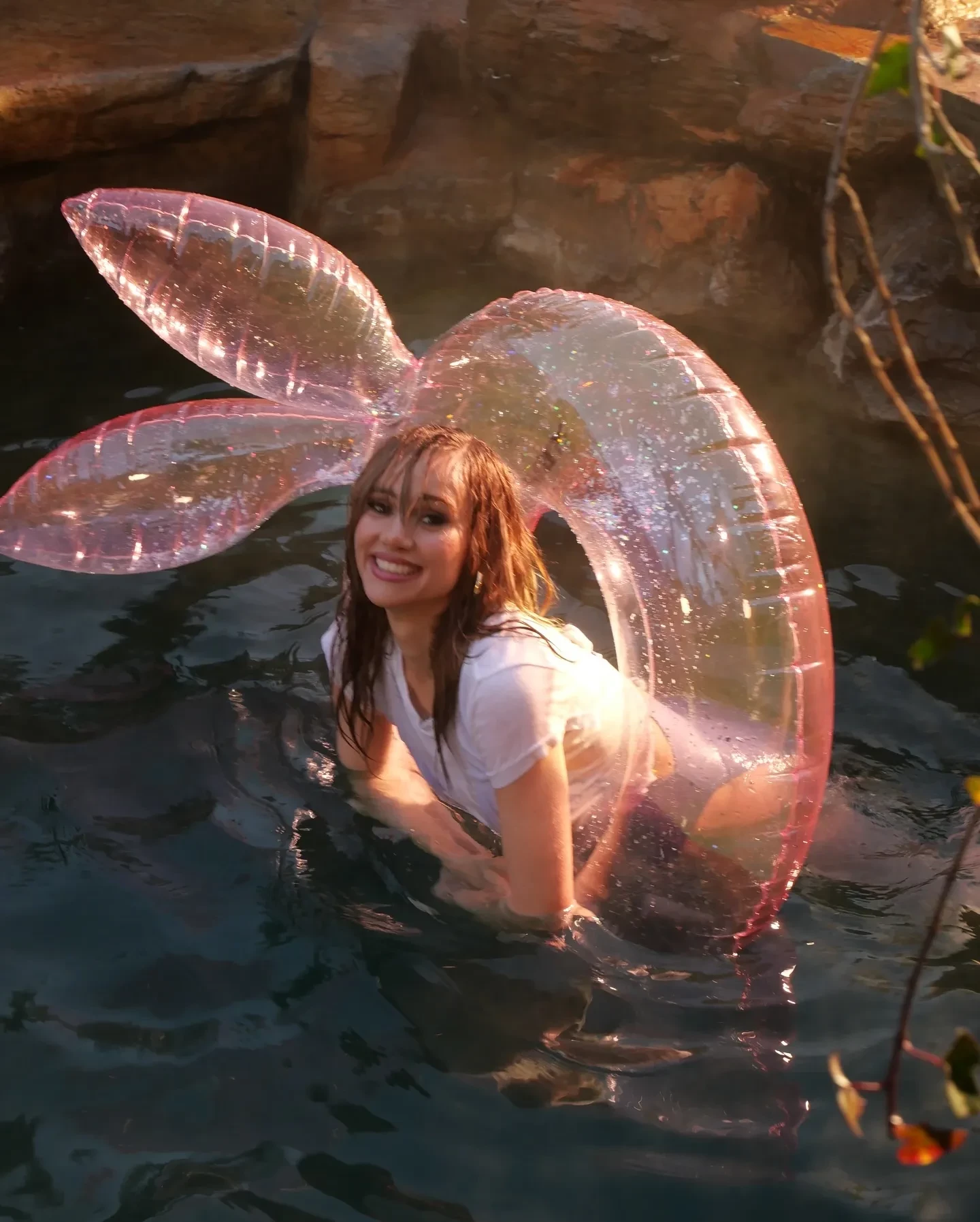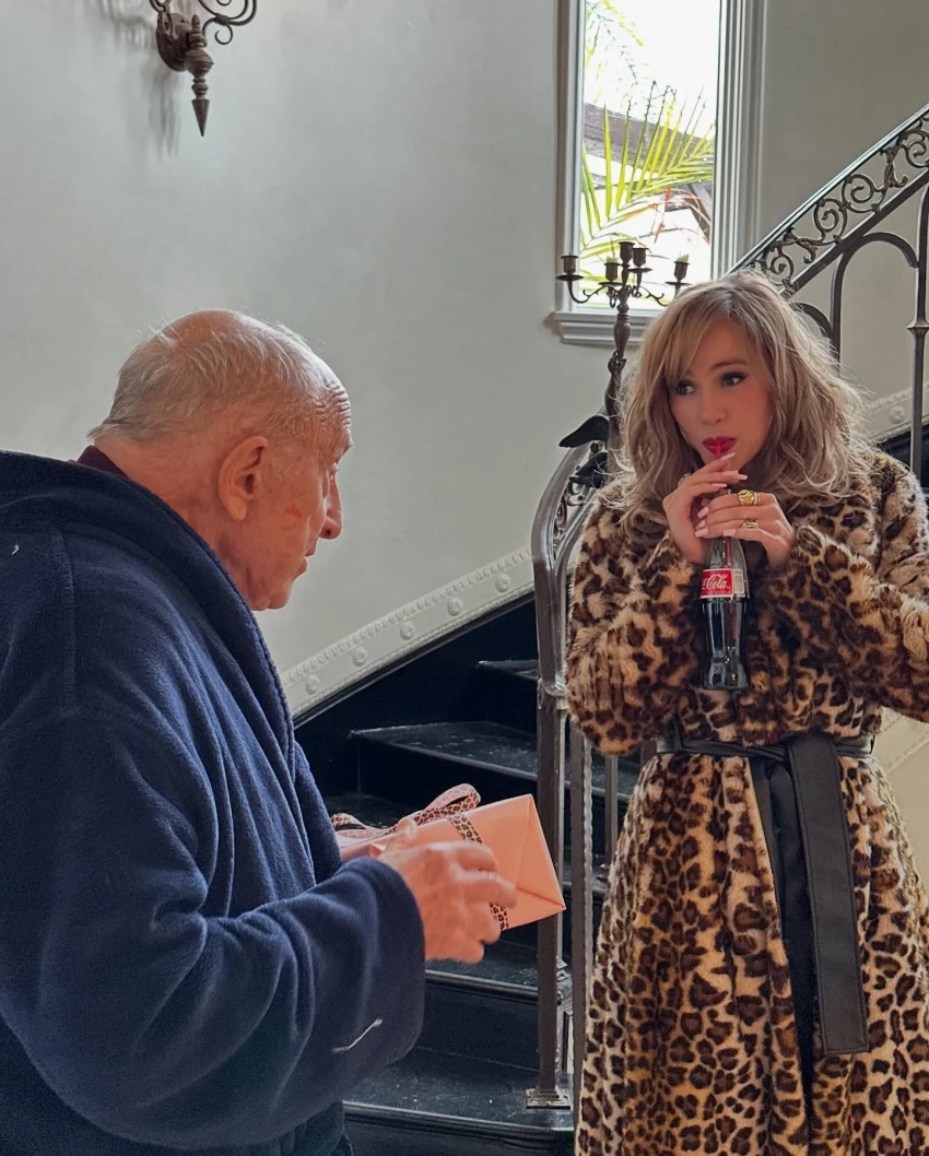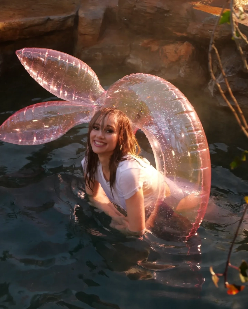 Помимо фото, на котором Сьюки прикрывает оголённую грудь рукой, она также добавила снимки из бассейна с надувным кругом в виде логотипа Playboy и несколько кадров в антураже роскошного особняка, в том числе в компании пожилого мужчины, который, предположительно, исполняет роль её богатого бойфренда. "Я могу сойти с ума от этой любви", — подписала артистка пост, отсылая к названию своего нового сингла On This Love.
