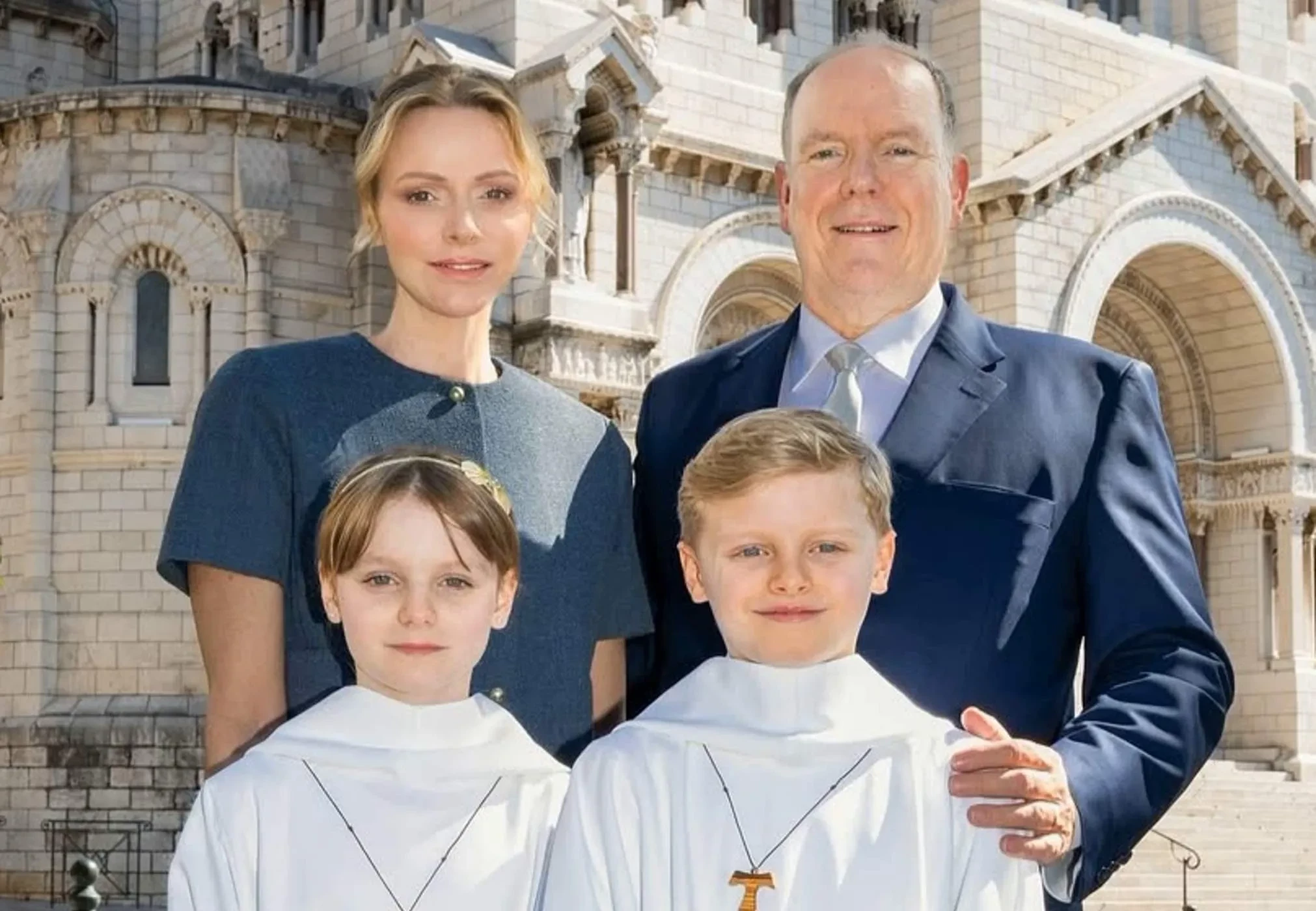 Дети княгини Шарлен и Альбера II, 10-летние близнецы Жак и Габриэлла, прошли своё первое таинство причастия. Об этом представители княжеской семьи Монако сообщили в официальных соцсетях.