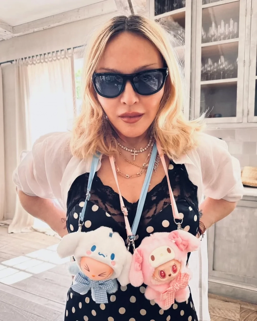 На кадрах звезда позирует на природе в чёрном платье в горох вместе с 28-летней дочерью Лурдес от Карлоса Леона, а также с приёмными детьми: 19-летним Дэвидом Бандой, 19-летней Мерси и 13-летними близнецами Стеллой и Эстер. 24-летний сын Рокко от брака с Гаем Ричи пропустил семейное торжество.
