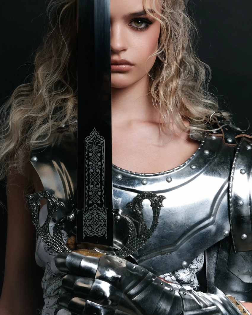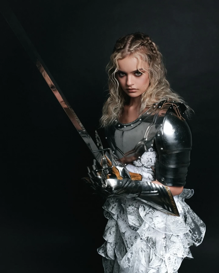 "В каждой девочке живёт рыцарь". 18-летняя жена режиссёра Марка Горобца снялась в доспехах на фоне критики пары