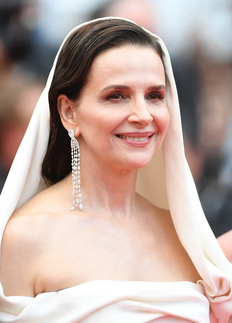 Жюльет Бинош, ставшая в этом году председателем кинофестиваля, появилась в оригиналом белом костюме с топом, переходящим в капюшон.