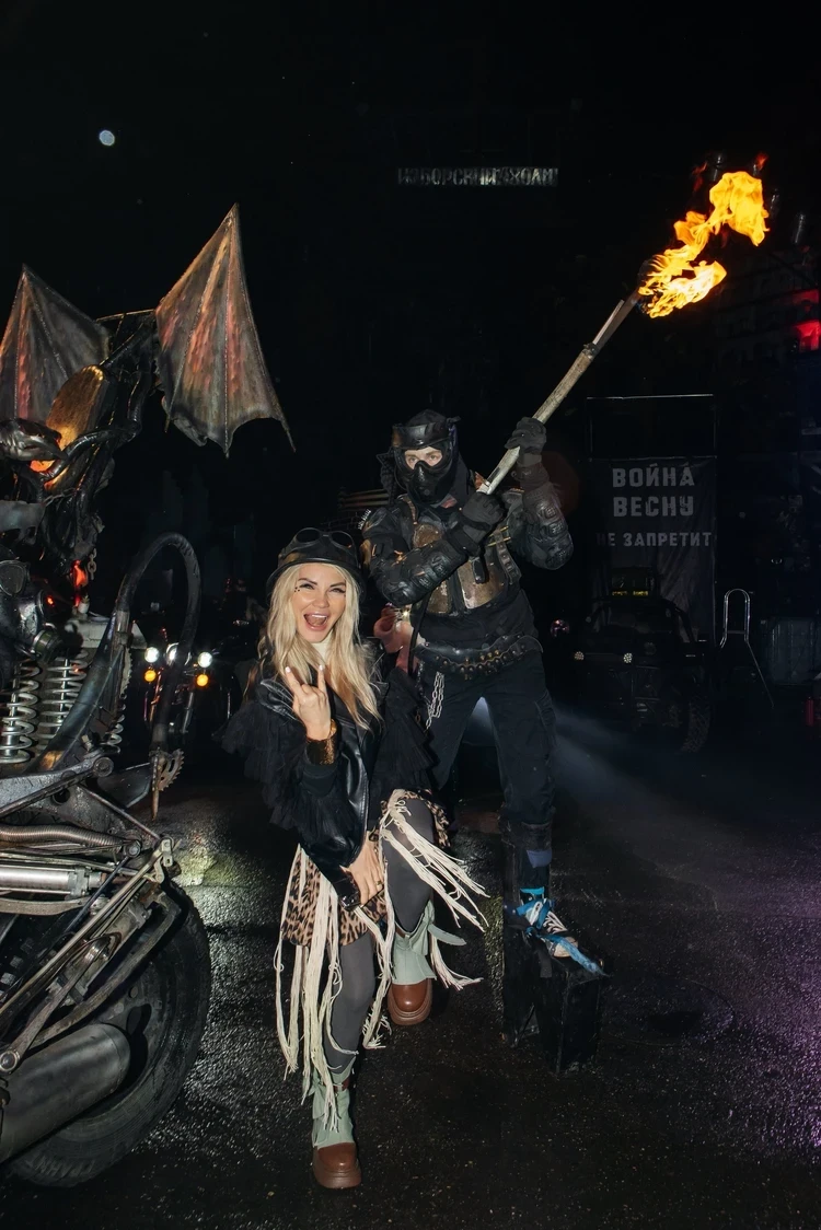 Добавим, что техника из фильма «Безумный Макс» была воссоздана московскими байкерами на территории клуба. Параллельно для гостей, которых на улицу пригласил ведущий Денис Осташов, организовали огненное шоу.
