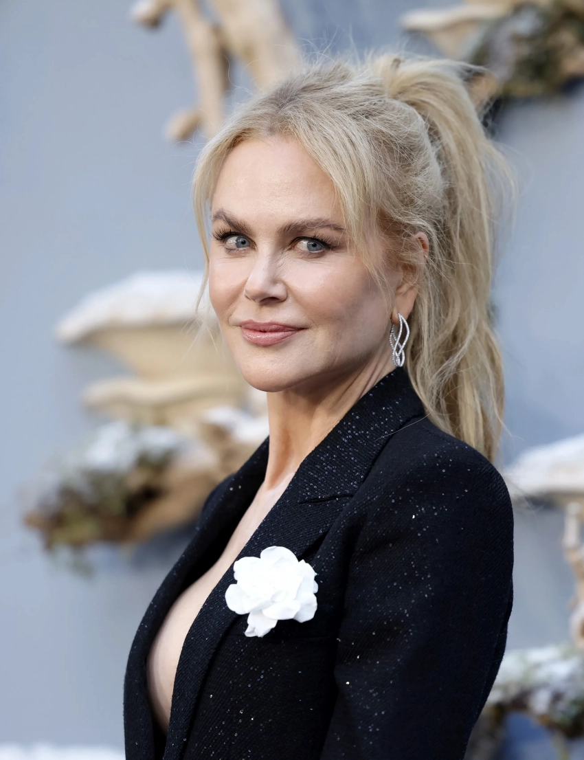 Николь Кидман посетила премьеру второго сезона сериала "Девять совсем незнакомых людей" в Беверли-Хиллз. На дорожку 57-летняя актриса вышла в чёрном жакете Tom Ford, надетом на голое тело, и брюках, дополнив образ перчатками в тон и причёской с высоким хвостом.