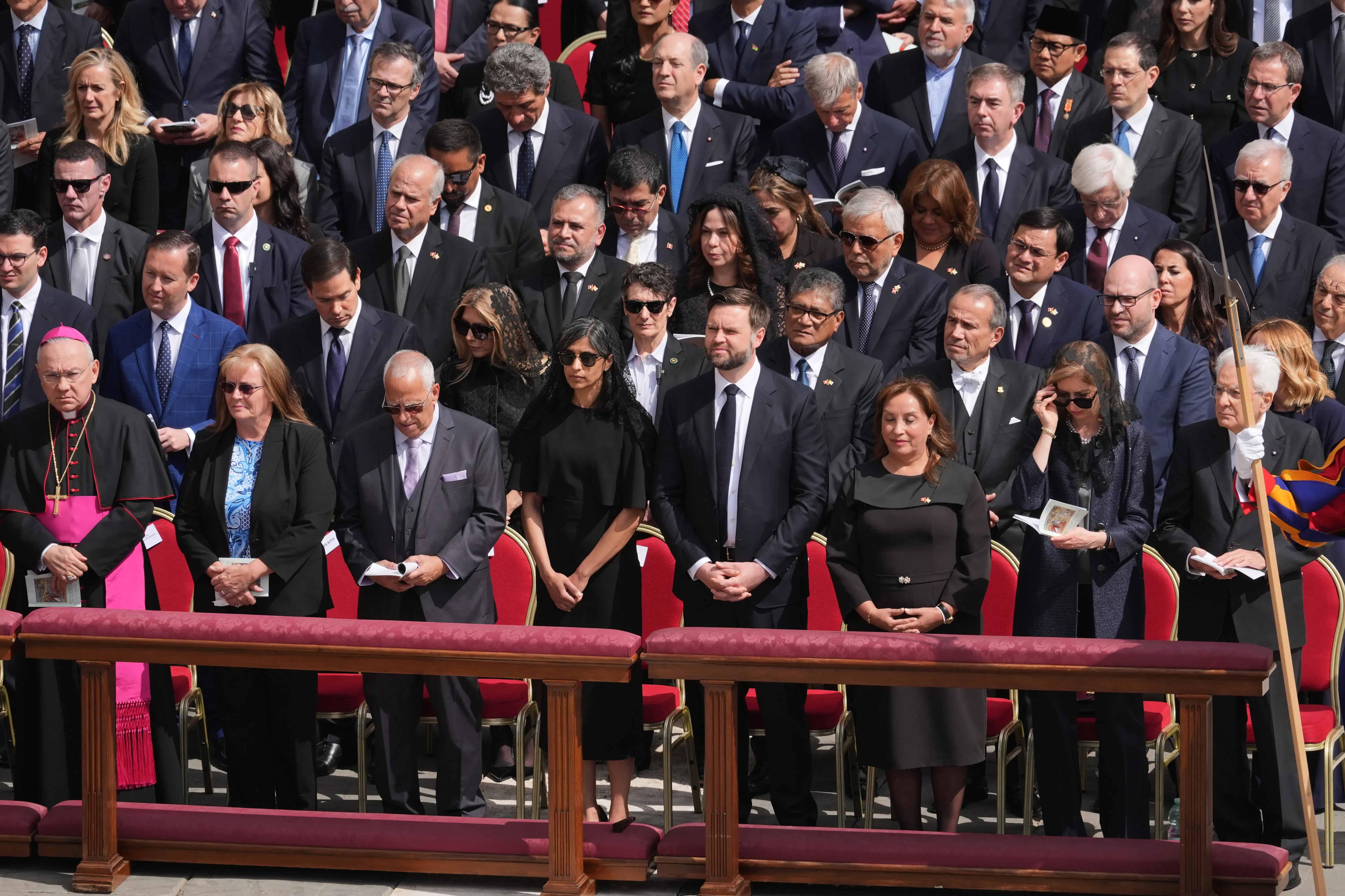 Княгиня Шарлен и Альбер IIВеликий герцог и герцогиня Люксембурга Анри и Мария ТерезаКороль и королева Бельгии Филипп и МатильдаКороль и королева Испании Филипп VIи ЛетицияКороль и королева Испании Филипп VIи Летиция, король и королева Бельгии Филипп и МатильдаНа снимках с мероприятия можно также увидеть многих политиков: вице-президента США Джей Ди Вэнса с женой Ушей, госсекретаря Марко Рубио, главу Еврокомиссии Урсула фон дер Ляйен, премьер-министра Италии Джорджу Мелони, президента Украины Владимира Зеленского с супругой Еленой и других.