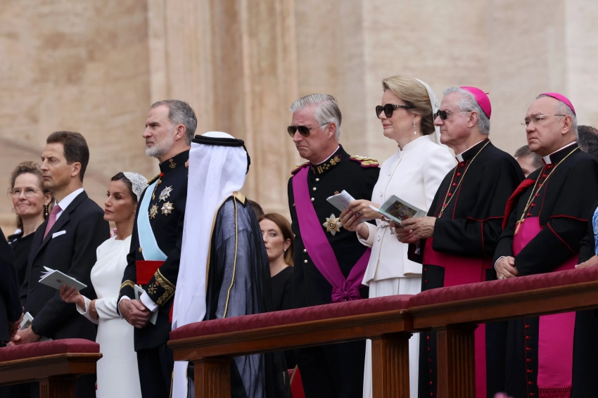 Папа римский Лев XIVНа церемонию помимо около 250 тысяч паломников прибыли также делегации из 156 стран и международных организаций. Среди гостей на Богослужении в базилике Святого Петра оказались многие представители правящих семей Европы: князь Монако Альбер II с супругой Шарлен, король и королева Испании Филипп VIи Летиция, король и королева Бельгии Филипп и Матильда, королева Нидерландов Максима, великий герцог и герцогиня Люксембурга Анри и Мария Тереза, герцог Эдинбургский Эдвард.
