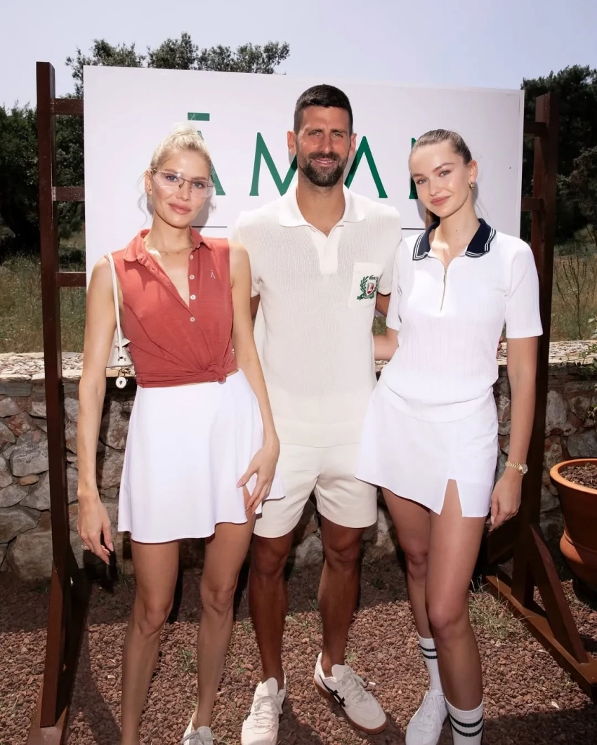 Елена Перминова с бойфрендом и Кристина Романова встретились с теннисистом Новаком Джоковичем на вечеринке Aman