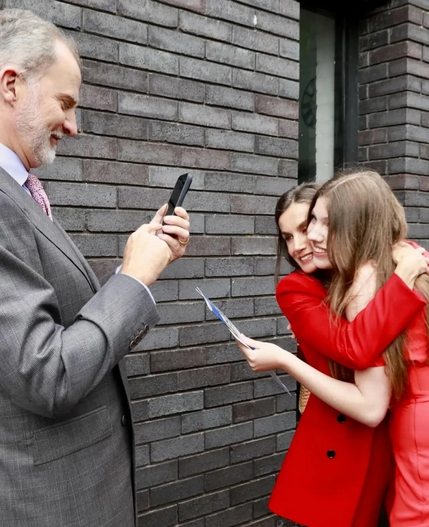 На церемонию вручения дипломов девушка пришла в ярко-красном комбинезоне. Летиция, которая тоже посетила мероприятие вместе с мужем, выбрала брючный костюм того же цвета. Фотографии с события позже были опубликованы в официальных сетях королевской семьи.
