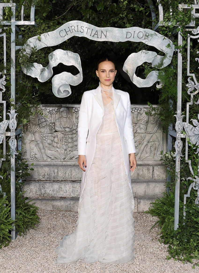 Дресс-кодом вечера стала белоснежная гамма, и все гости справились с заданием. 43-летняя Натали Портман пришла в платье с оборками и удлинённом жакете, 20-летняя дочь Моники Беллуччи Дева Кассель позировала в платье со спущенными плечами, дополнив образ золотой сумкой.