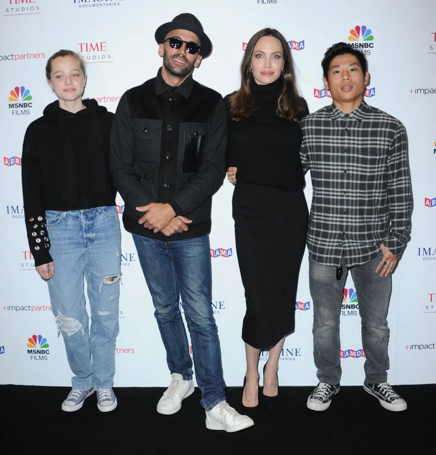Анджелина Джоли с дочерью Шайло, сыном Паксом и художником Джей АрВ детстве Пакс пробовал себя в актёрстве, получив небольшие роли в фильме своей мамы "Малефисента" и озвучив персонажа в мультфильме "Кунг-фу Панда 3". В более взрослом возрасте он был помощником режиссёра на фильме 2024 года "Без крови", режиссёром которого выступила Джоли. В интервью 2016 года актриса рассказала, что её сын также увлечён музыкой и диджеингом.