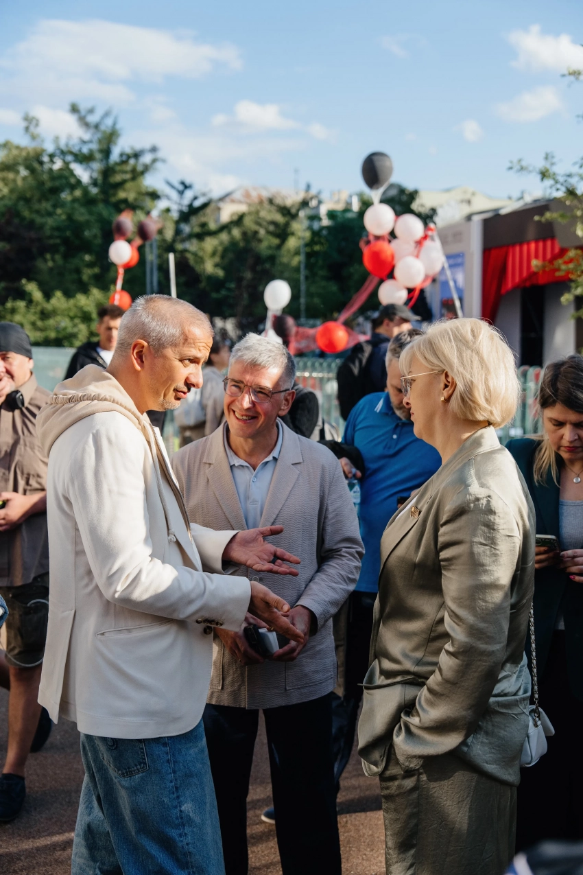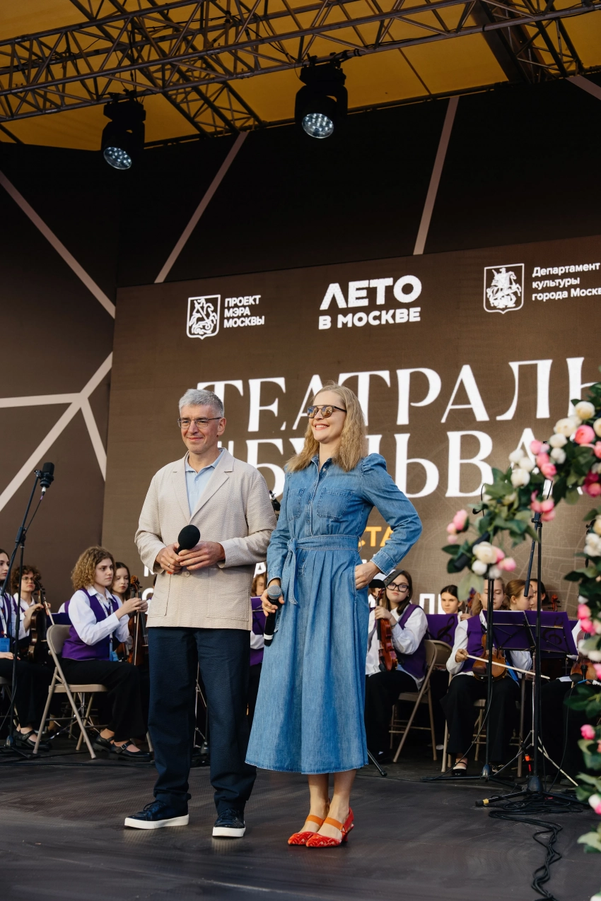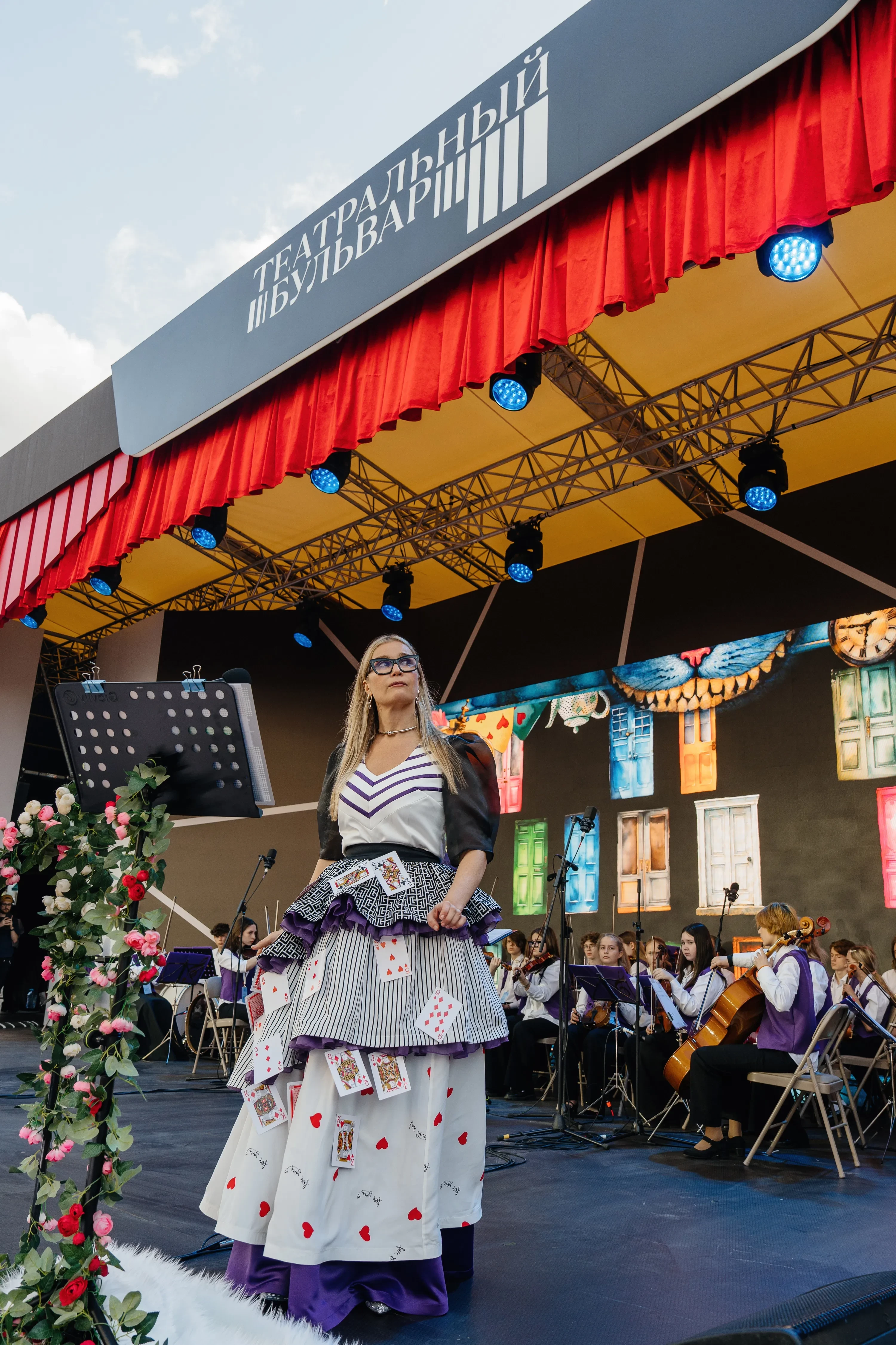 Агата Муцениеце и Пётр ДрангаАгата Муцениеце и Пётр ДрангаКонстантин БогомоловСветлана ИвановаСветлана ИвановаЮлия ПересильдЮлия ПересильдИлья БачуринИрина АпексимоваИрина АпексимоваАлексей ФурсинЕлена ЗахароваЕкатерина ГусеваЕкатерина ГусеваКристина БабушкинаКристина БабушкинаДарья МорозКонечной точкой театрального марафона стала главная площадка фестиваля — Амфитеатр на Покровском бульваре. Здесь зрителей встречали глава столичного Департамента культуры Алексей Фурсин, а также актёры, режиссёры и руководители многих московских театров. Открылся фестиваль музыкальным спектаклем "Алиса в Стране чудес", где роль рассказчицы исполнила Кристина Бабушкина, сыгравшая в одноимённом фильме. Свою версию "Алисы" на другой площадке представила и Дарья Мороз — обе актрисы появились на мероприятии в соответствующих их героиням нарядах.