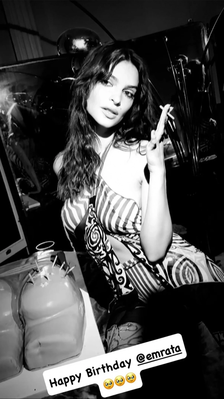 На новых снимках Эмили запечатлена на вечеринке: она позирует со своими друзьями, а также рядом с тортом, который выполнен в форме самой модели. Также она добавила фотографию с Ириной Шейк, которая позирует вместе с красным шариком в кружевном платье. "Ого, это был лучший день рождения! Безумно благодарна за свою жизнь — за друзей, за людей рядом и за всё веселье. Спасибо за вашу любовь!", — подписала Эмили фотографии.