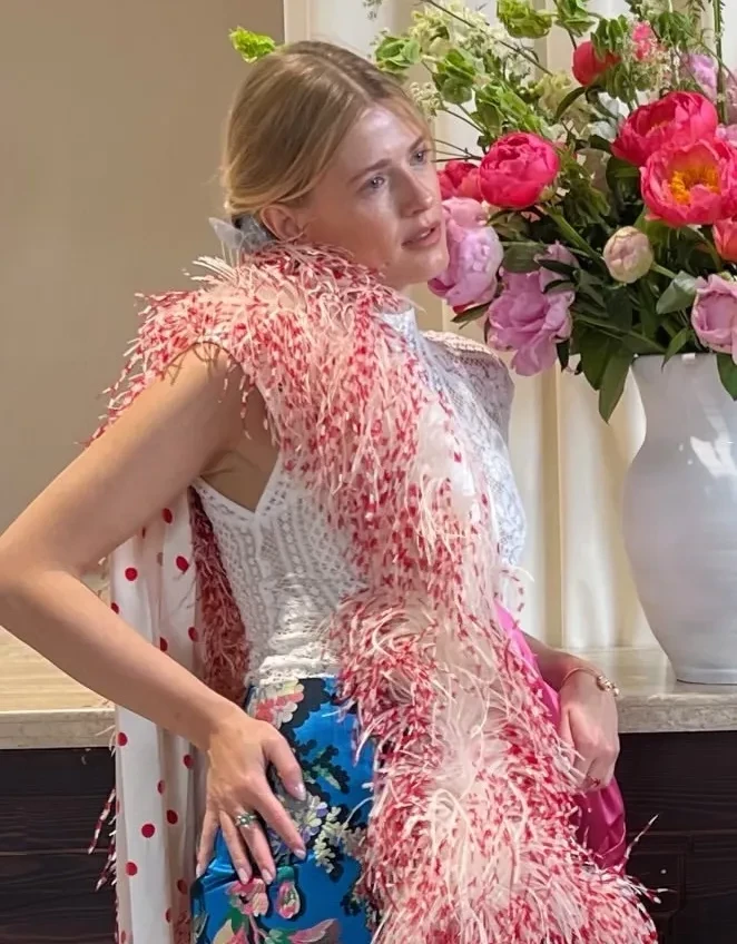 Софья Эрнст вышла в свет в боа с перьями и кружевном топе