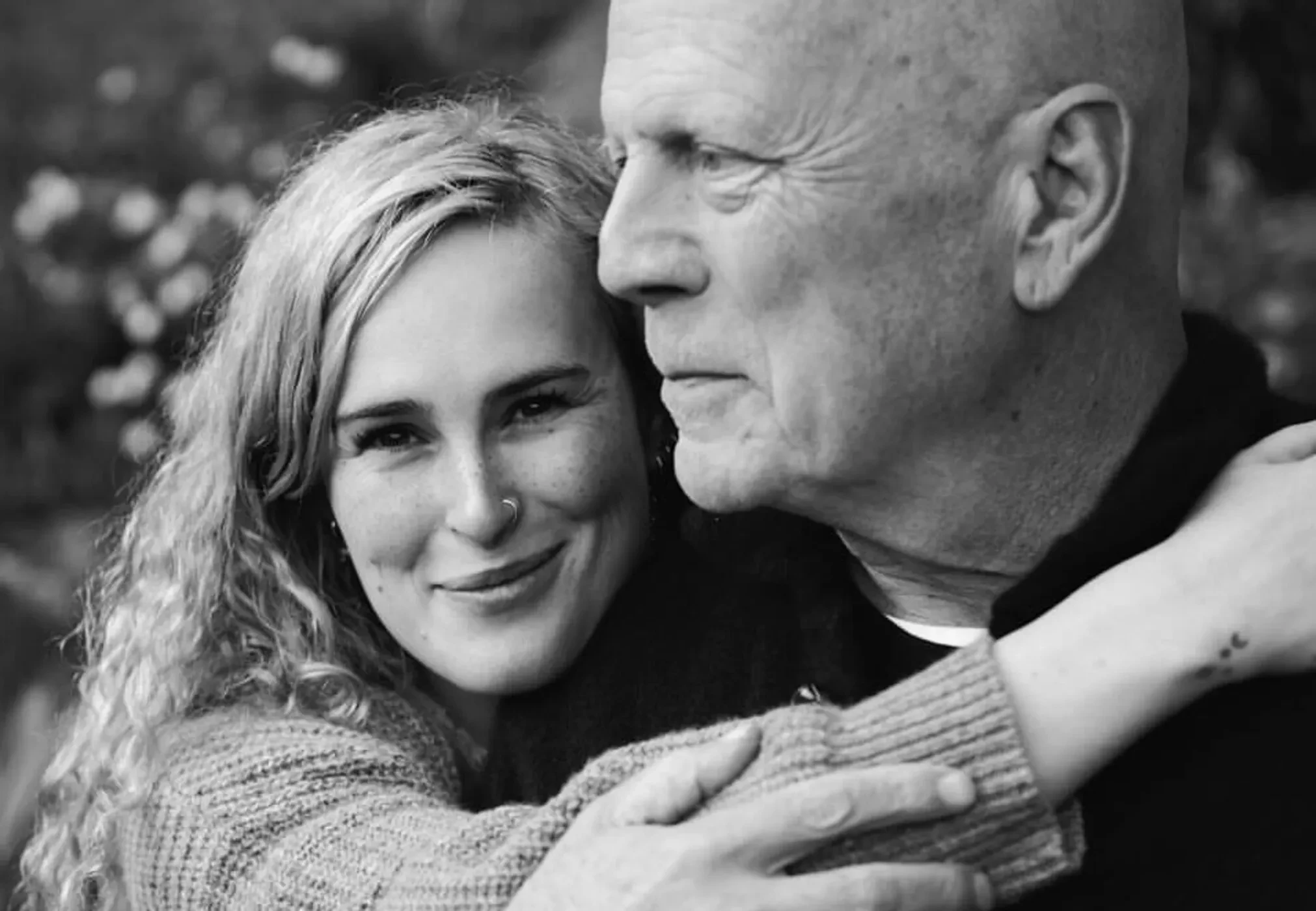 На снимках Брюс держит на руках и обнимает маленькую Румер. Также она добавила чёрно-белый снимок себя взрослой и отца, а также его с внучкой. "Сегодня тяжёлый день. У меня в груди щемит от желания поговорить с тобой, рассказать, что происходит в моей жизни, чем я занимаюсь. Обнять тебя, расспросить о твоей жизни, историях, трудностях и победах. Жалею, что не задавала тебе больше вопросов, пока ты мог обо всём рассказать. Но я знаю — ты бы не хотел, чтобы я грустила сегодня. Поэтому постараюсь просто быть благодарной. Как мне повезло, что ты мой папа", — подписала 36-летняя Румер фотографии.