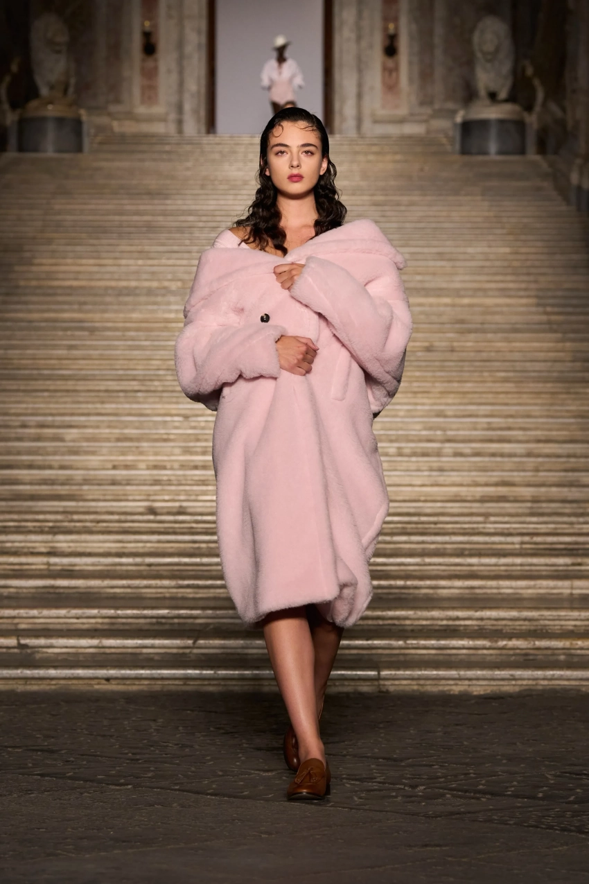 Летиция Каста и Анна Делло РуссоВинченцо Куомо и Гвинет ПэлтроуШэрон СтоунНики, Ричард и Кэти Хилтонhttps://t.me/spletnik2006/33235Креативный директор Ян Гриффитс отметил 38 лет работы с брендом и представил яркую коллекцию, вдохновлённую итальянским кино и стилем 1950-х, под названием Vesuvian Venus. Модели выходили на подиум в шортах с завышенной талией и ботфортах, меховых пальто, блестящих платьях, топах-бюстье.