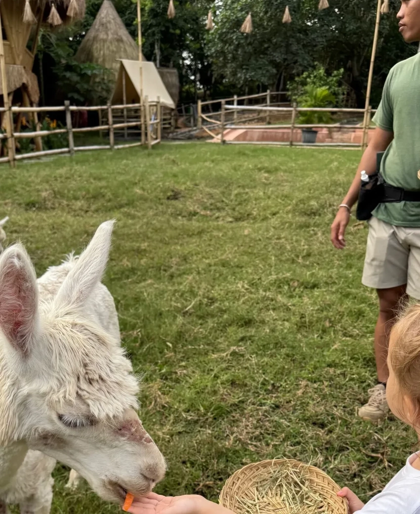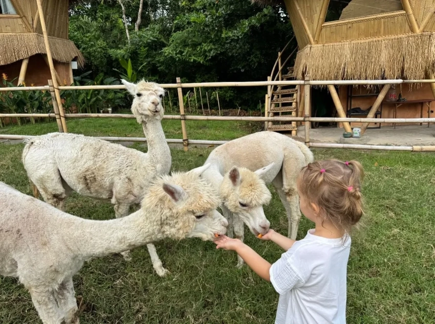 Кафельникова проводит время в тренажёрном зале, а ещё сводила дочь, которая скоро отметит четырёхлетие, на местную ферму. Здесь Киара покормила лам морковью.