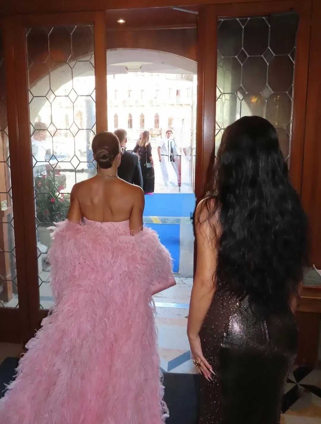 Так, прилетела в Венецию, чтобы поздравить брачующихся, старшая дочь президента США Дональда Трампа, 43-летняя Иванка. Компанию ей составили муж Джаред Кушнер и дети. В своих соцсетях Иванка уже показала часть своих образов для торжества: розовое мини-платье Oscar de la Renta с отделкой в виде цветов и продолжающее цветочную тему, но более элегантное платье Tony Ward без рукавов и с длинным разрезом.