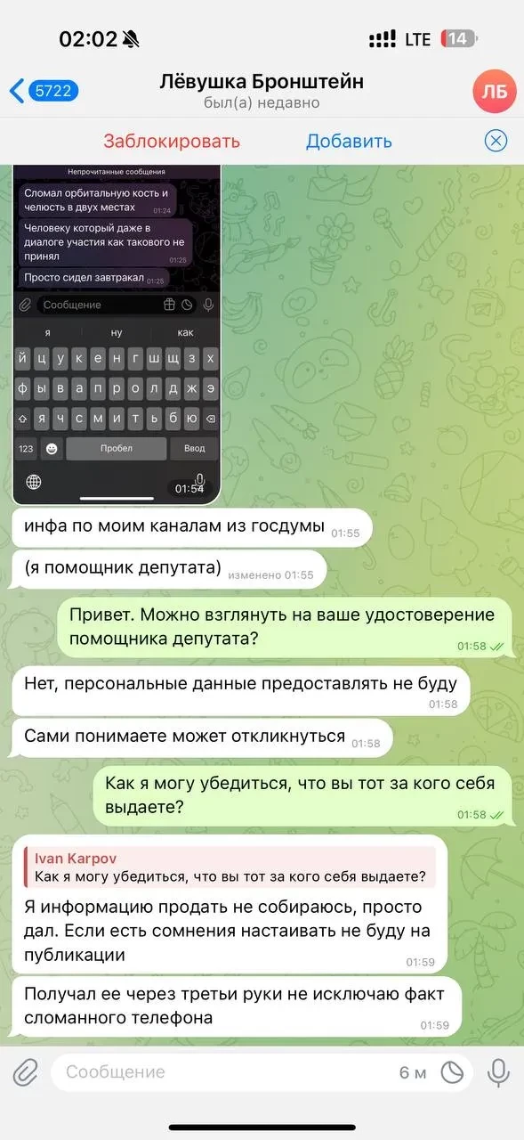 https://t.me/spletnik2006/34731По информации Карпова, Фёдора пытались шантажировать, требуя деньги за то, чтобы не публиковать компрометирующее видео. Он отказался, и ролик оказался в открытом доступе. Журналист также приложил скриншоты переписки, в которой некий человек, представившийся помощником депутата, утверждает, что причиной конфликта стало поведение Смолова в состоянии алкогольного опьянения. Якобы футболист настаивал на том, чтобы всем гостям налили выпить, и, в частности, предлагал алкоголь тем самым мужчинам, которые, в свою очередь, отказались. После этого и началась драка. Согласно неофициальной информации, в результате потасовки один из оппонентов получил серьёзные травмы: якобы у него диагностировали перелом орбитальной кости и двойной перелом челюсти.