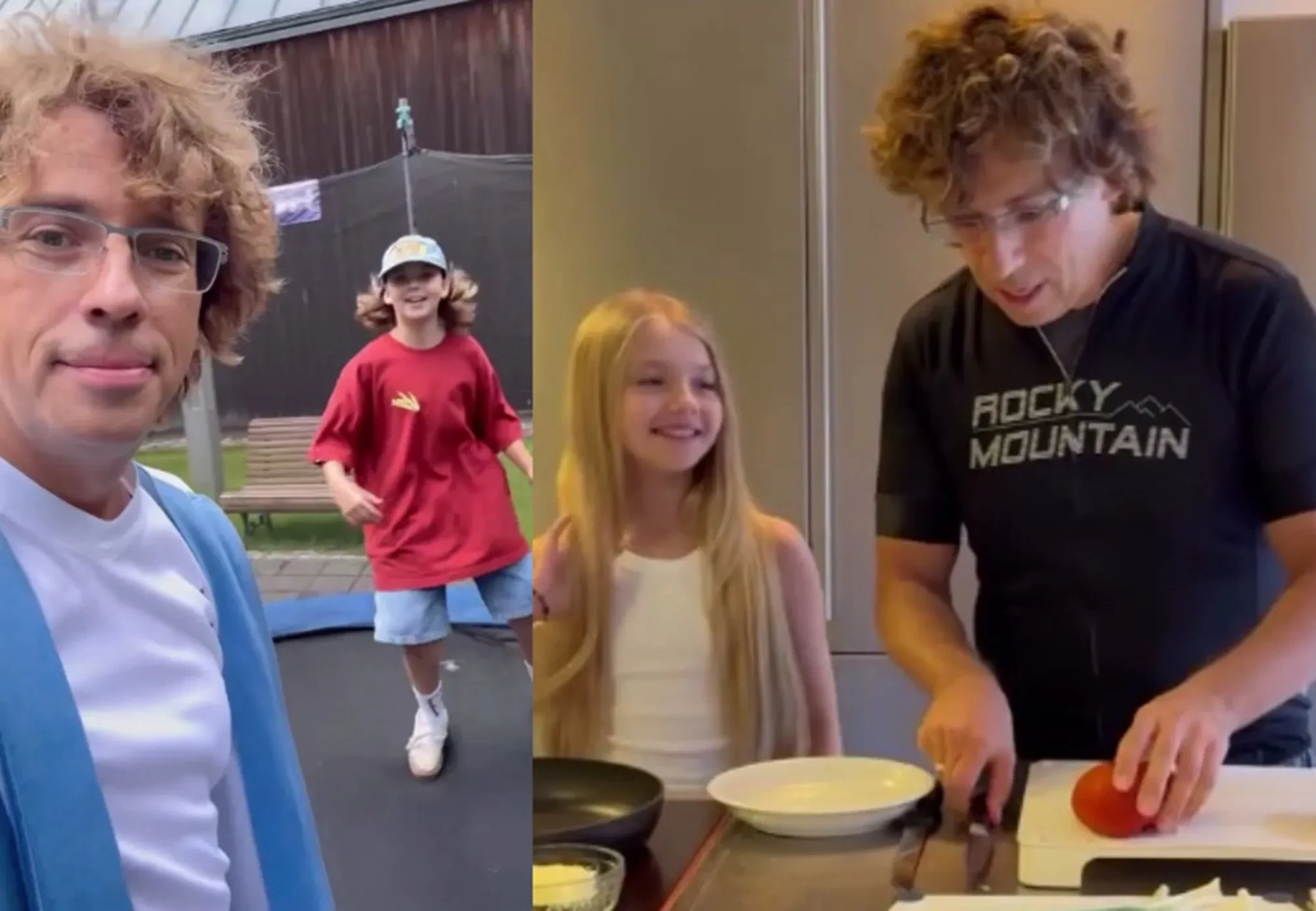 В одном из роликов, который сняла 76-летняя Пугачёва, 49-летний шоумен готовит завтрак с Лизой. В другом видео он готовится прыгать на батуте с Гарри, попутно поправляя его английский.