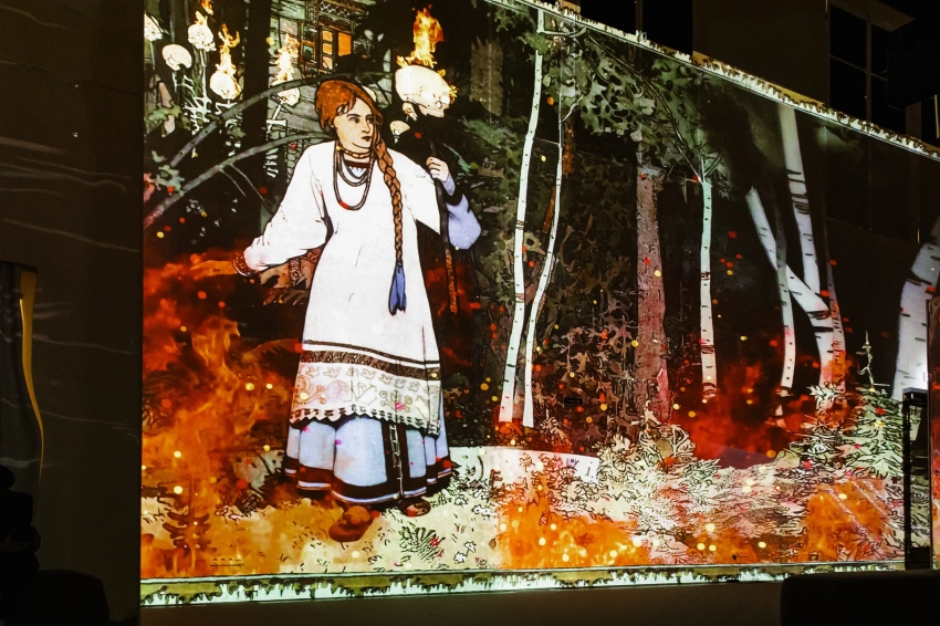 Полина АскериПолина АскериСимона Юнусова с внучкой АлисойСимона Юнусова с внучкой АлисойНаташа КоролёваНаташа КоролёваКатерина ШпицаКатерина ШпицаПервым проектом в обновлённом здании стала мультимедийная выставка "За тридевять земель", посвящённая главному музейному тренду последних лет — русскому культурному коду. Более ста шедевров русской живописи конца XIX — начала XX века, среди которых работы Васнецова, Левитана, Билибина, Врубеля, Куинджи, Рериха, Шишкина, Васильева, Нестерова и Айвазовского, "ожили" благодаря современным технологиям: искусственный интеллект и саунд-дизайн превратили полотна в виртуальное путешествие по сказочным мирам. Каждую картину сопровождает свой звукоряд (шорохи леса, шелест трав, голос ветра и даже тревожный хруст веток за спиной), который помогает создать эффект полного погружения.