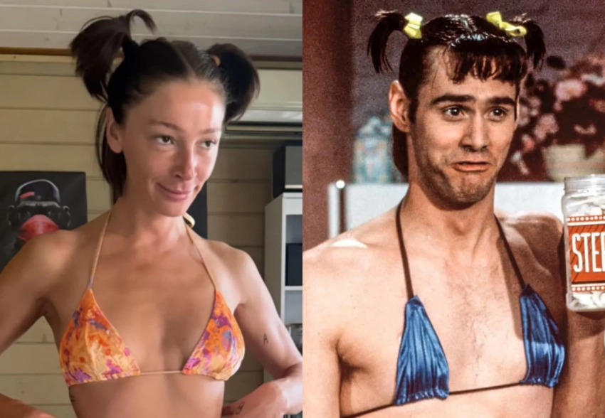 Настя Ивлеева повторила образ Джима Керри в бикини