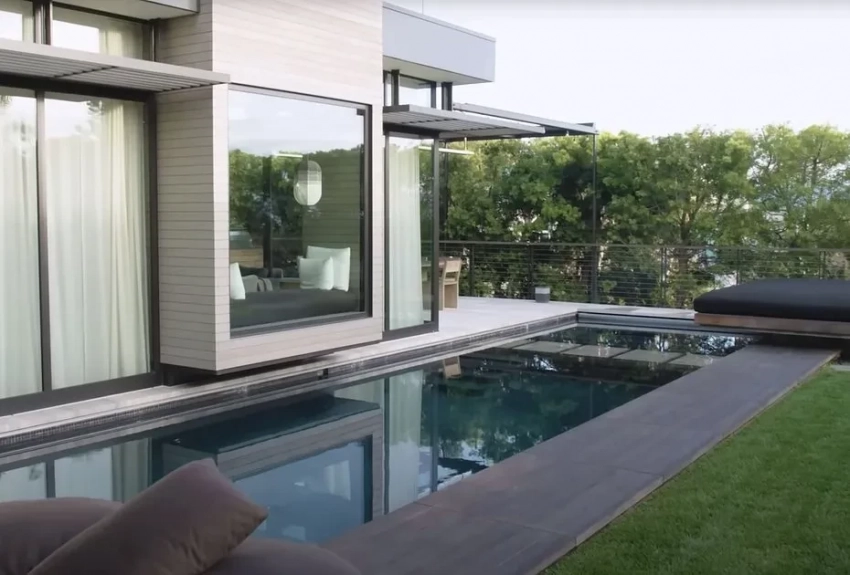 "Она участвовала в каждом аспекте, вплоть до мельчайших деталей и выбора материалов", — рассказывал в 2019 году журналистам архитектор Грант Киркпатрик, который занимался проектом. Дизайном интерьера занималась Кортни Эпплбаум, которой Шарапова поручила разработать концепцию в эстетике минимализма. "Я росла в окружении небольшого количества вещей. Для меня лаконичность означает здоровье. Если чем-то не пользуешься, оно тебе не нужно", — говорила сама спортсменка. В результате особняк оформили в японском стиле и окружили живой изгородью. Его стены выполнены из необработанных бетонных панелей, но его "начинка" содержит все атрибуты богатой жизни: медиазал, боулинг с двумя дорожками и бассейн — прямо за раздвижными стеклянными дверями гостиной.