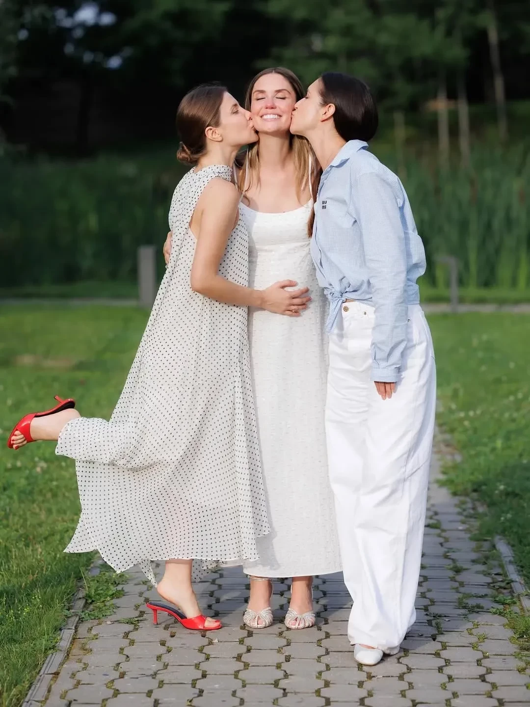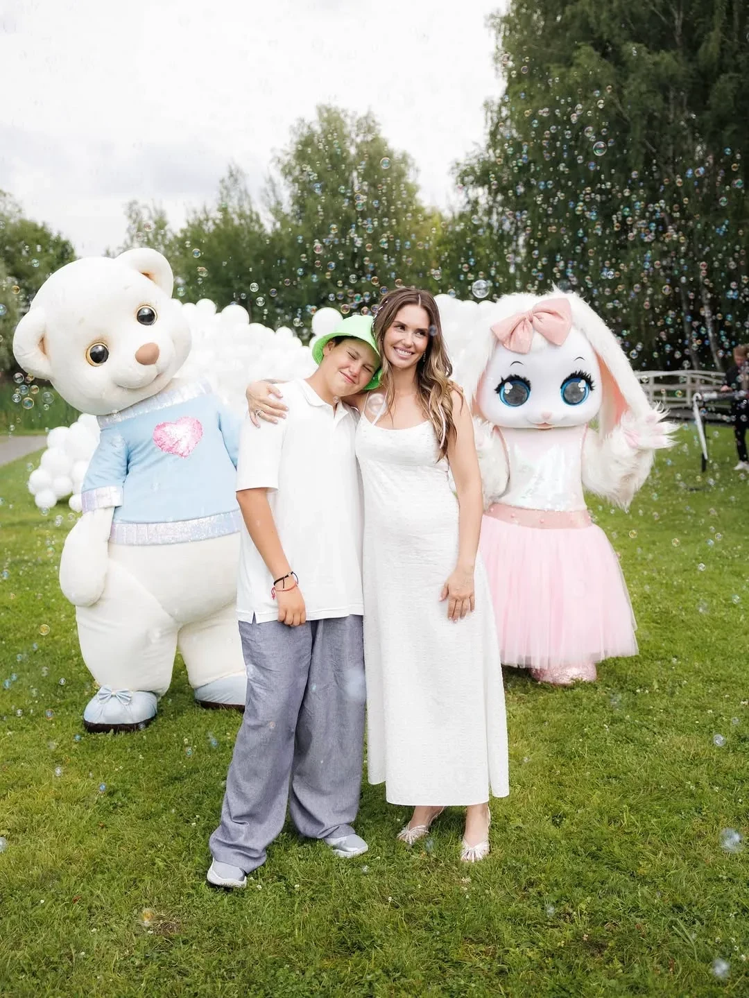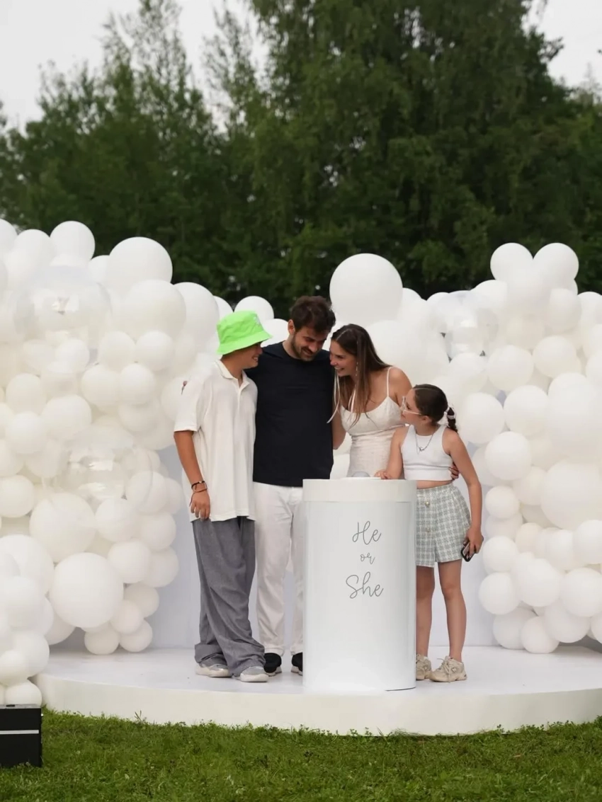 36-летняя Агата появилась перед гостями в белом платье бренда своей подруги Олеси Шиповской Lesyanebo. Дизайнер тоже пришла поддержать актрису. На гендер-пати также были: дети Муцениеце от экс-супруга Павла Прилучного — сын Тимофей и дочь Мия, отец Петра Дранги Юрий, беременная жена Анатолия Руденко — актриса Елена Дудина, блогеры Денис и Елена Кукояка, режиссёр Яна Климова-Юсупова и многие другие.