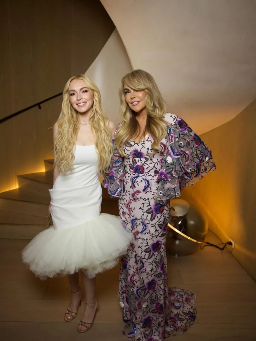 Линдси Лохан вышла в свет с мужем и матерью
