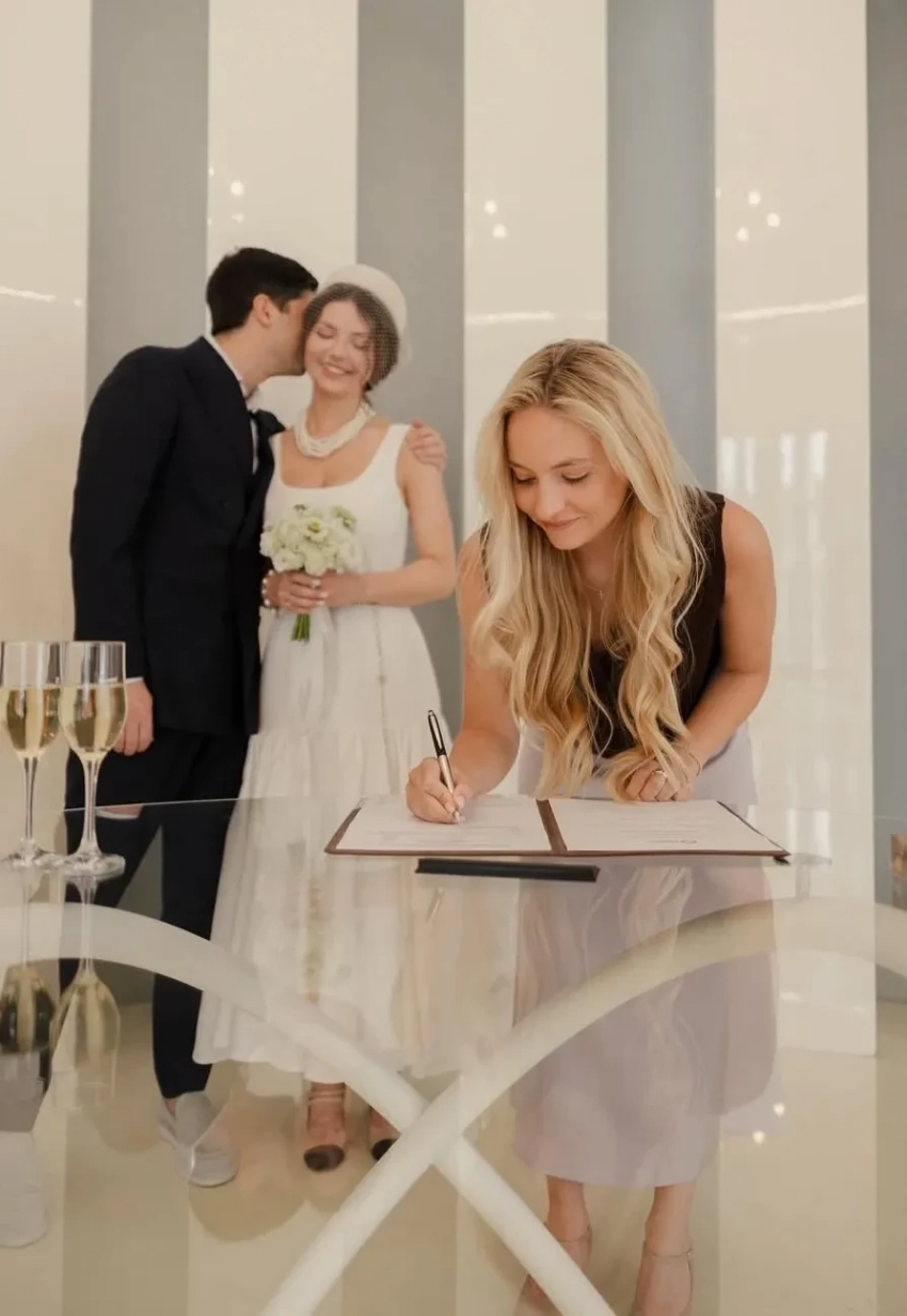 Дочь гендиректора ГУМа и управляющей компании Bosco Теймураза Гугуберидзе София, которая недавно сыграла роскошную свадьбу в Грузии, поделилась снимками с регистрации брака.