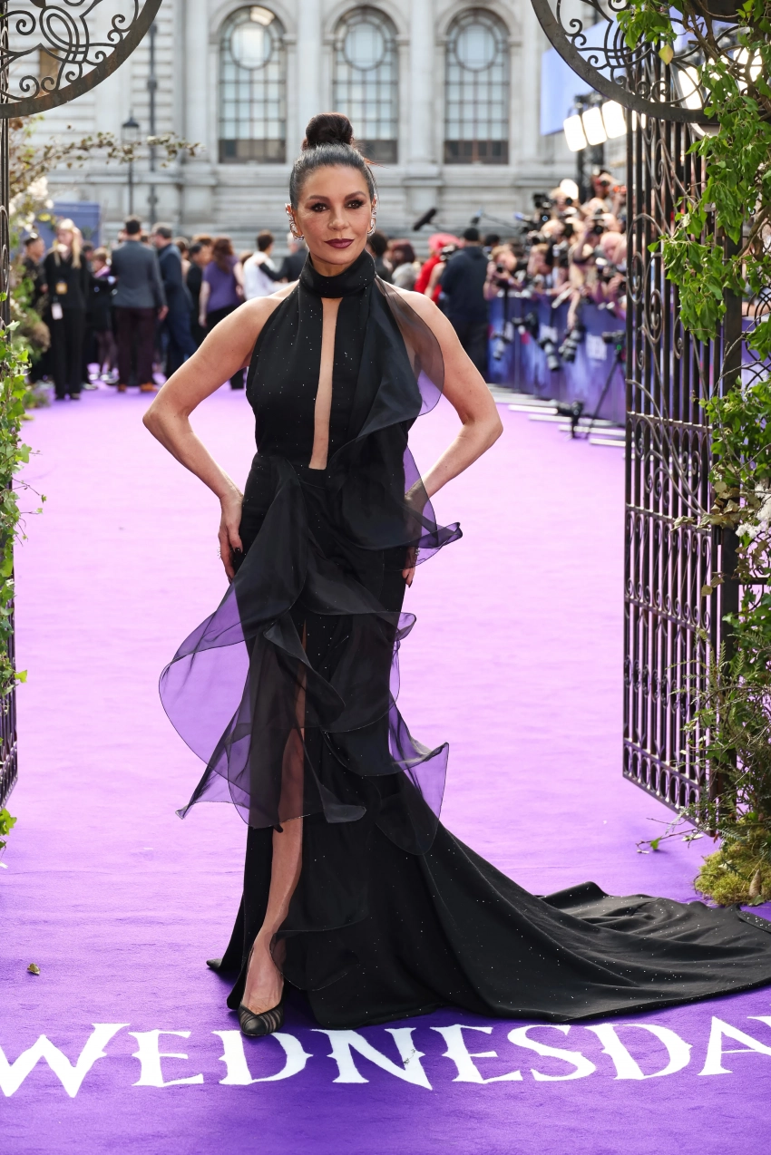 55-летнюю Кэтрин Зету-Джонс заподозрили в том, что она сделала себе пластическую операцию к съёмкам второго сезона сериала "Уэнсдей", где вновь вернулась к роли Мортиши Аддамс. В сети сравнили архивные и новые фото актрисы и пришли к выводу, что она пошла на глобальное преображение.