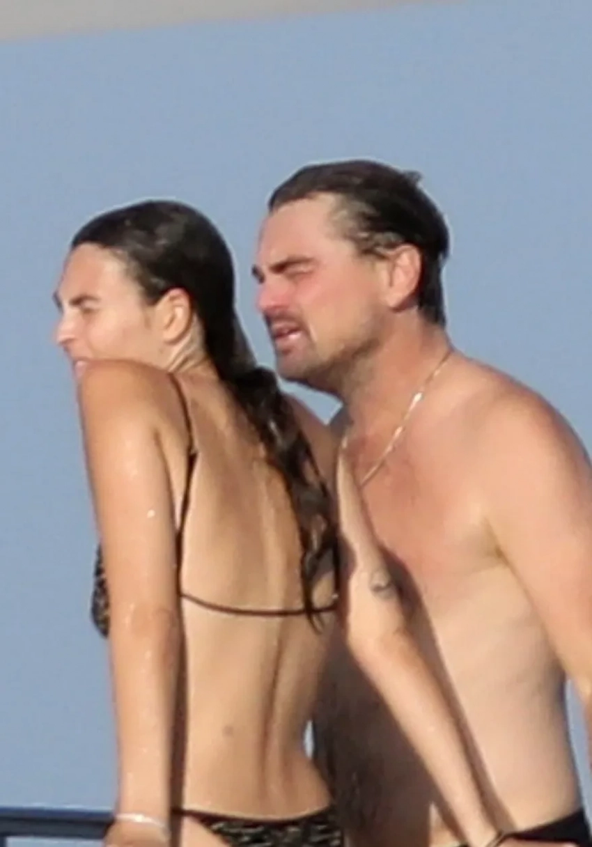Караулившие пару папарацци засняли, как, поднимаясь на борт, 27-летняя модель похлопала возлюбленного по ягодицам, а потом он закутал Витторию в своё полотенце. В кадр также попал момент, как Черетти целует ДиКаприо.