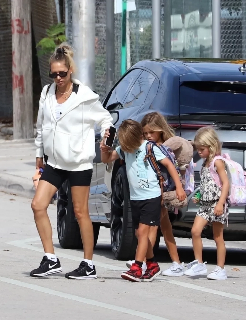 Папарацци засняли бывшую звезду тенниса в Майами, когда она отводила семилетних двойняшек Николаса и Люси и пятилетнюю дочь Машу на тренировку по карате. Анна была одета в объёмную толстовку и короткие шорты и переходила улицу, держа сына за руку, пока тот говорил или слушал что-то в телефоне. Дети селебрити тоже были одеты в спортивном стиле, а дочери и вовсе выбрали одинаковые костюмы.