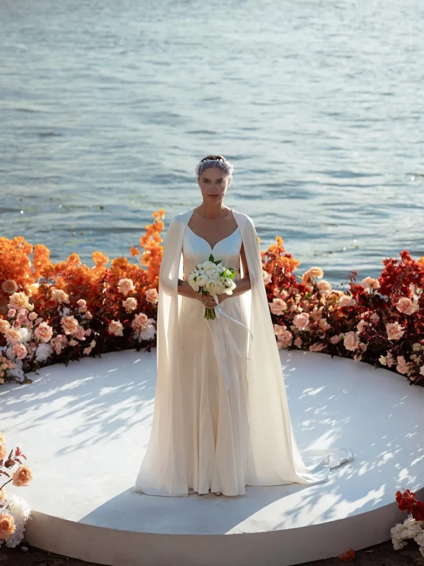 "Говорят, что счастье любит тишину, но совсем не поделиться кадрами с такого события я не могу! Честно, я не люблю свадьбы. Может быть, поэтому хотелось, чтоб всё было как-то камерно, по-родному, тепло и просто красиво. Я проснулась утром после свадьбы очень рано, в шесть утра. Прокручивала в голове все моменты этого дня и не могла поверить, что все случилось именно так! Прямо во время церемонии пошёл дождь на фоне солнца, и на всё небо засверкала радуга. Ну как вообще такое возможно? Это же чудо! Природа как будто показала своё благословение! Всё, что было дальше, пронизала любовь, тепло, смешение поколений и абсолютное счастье!", — поделилась Агата.