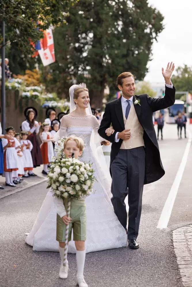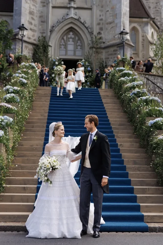 Несмотря на то что живут влюблённые в Лондоне, свадьбу они сыграли в Вадуце — столице Лихтенштейна. Церемония венчания прошла в соборе Святого Флорина, после чего молодожёны вместе с гостями отправились на свадебный приём в замке Вадуц.