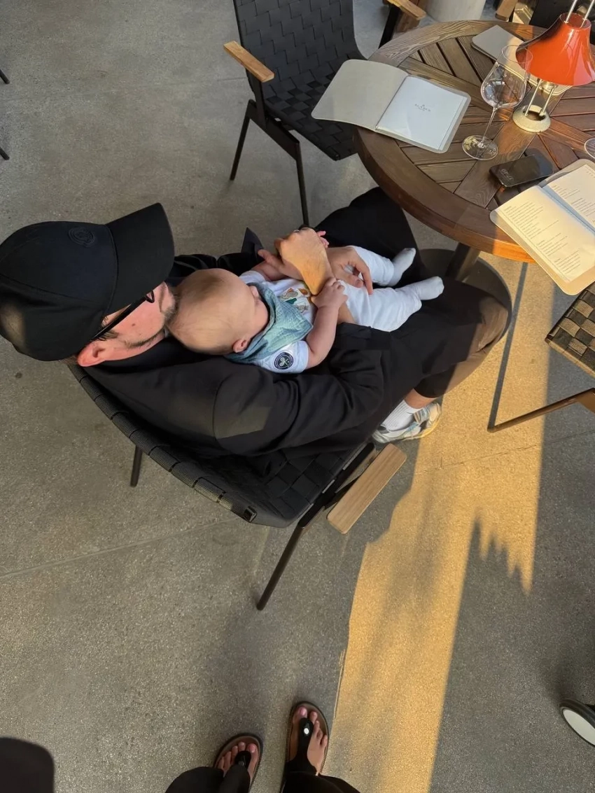 На снимках запечатлён Фёдор на руках у родителей. На одном фото можно рассмотреть часть лица мальчика, которому в сентябре исполнится пять месяцев. "Классный выходной — он такой. Вещи на заднем плане — это Саша вернулся из Питера. Бросили разбор на потом, грех в такую погоду не гулять", — подписала 24-летняя Виктория фотографии.