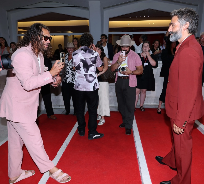 Руни Мара и Хоакин ФениксХоакин Феникс, Джеймс Уилсон и Руни МараРуни Мара и Хоакин ФениксМотаз Малхис и Одесса Рэй46-летний Джейсон Момоа вышел на дорожку в розовом костюме и шлёпанцах Birkenstock в тон, а ровесник актёра Оскар Айзек выбрал образ в красных оттенках. 54-летний режиссёр София Коппола позировала рядом с 62-летним дизайнером и своим другом Марком Джейкобсом в платье с кружевом из новой коллекции Marc Jacobs. Они представили документальную ленту о карьере и жизни модельера — "Марк Софии".
