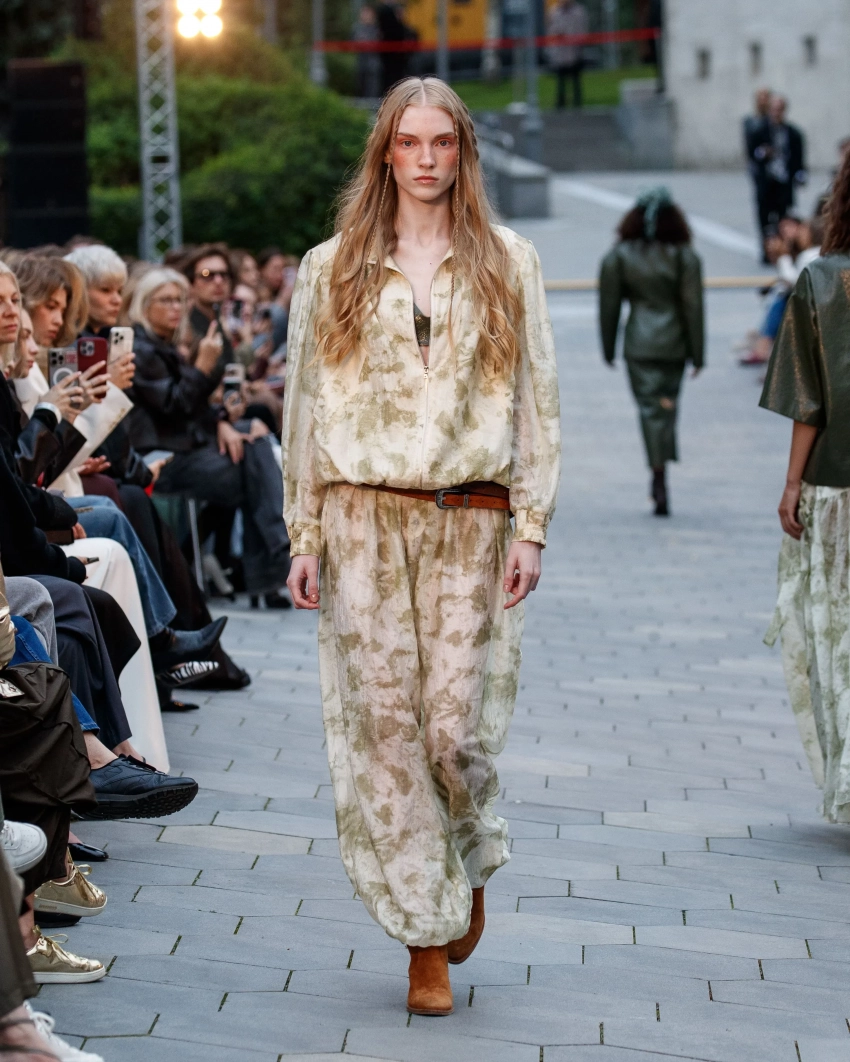 https://t.me/spletnik2006/39403Светлана БондарчукСветлана БондарчукВиктория ШеляговаЕлена ЛетучаяЕлена Летучая и Виктория ШеляговаТакже выделился показ бренда Masterpeace, который прошёл прямо на улице Варварке. Перед самим мероприятием выступили девушки в русских народных кокошниках. Московский бренд представил коллекцию в стиле богемного шика под названием "Сказка в стиле бохо", переплетённую с фольклорными мотивами. В неё вошли кожаные жакеты, блузы с летящими юбками и платья с воланами.