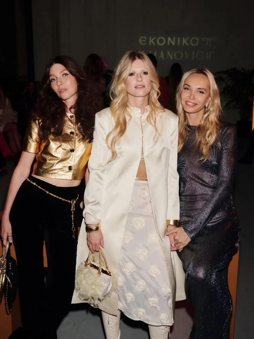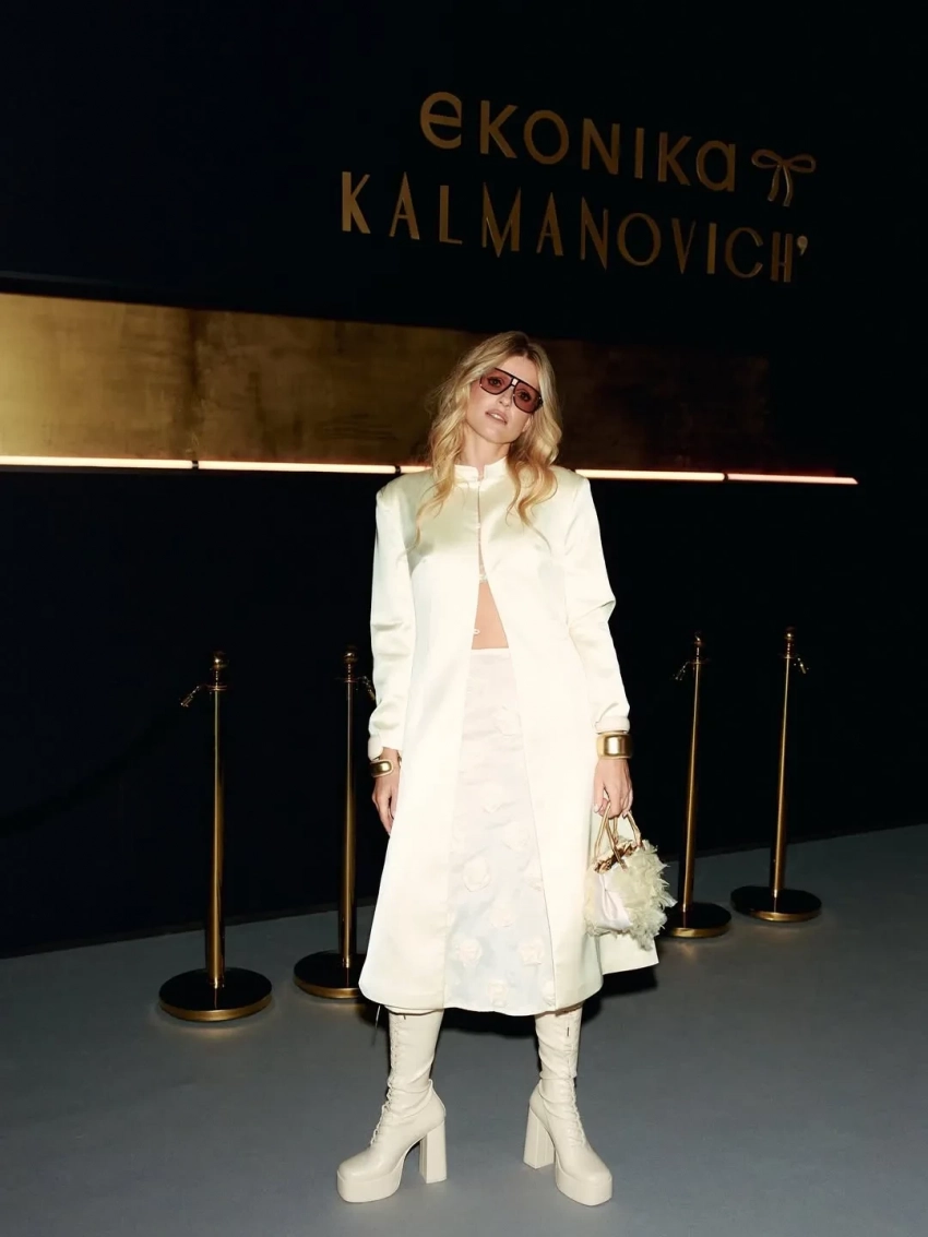 В Москве состоялась презентация совместной коллекции обуви Ekonika и Kalmanovich дизайнера Юлии Калманович. Гостями показа стали Ксения Собчак, Софья Эрнст и Дина Саева, которая впервые вышла в свет после задержания бойфренда Никиты Ефремова по делу о финансировании ФБК*.