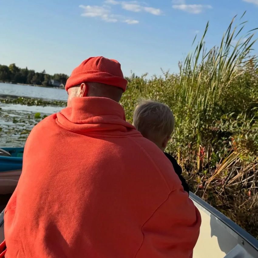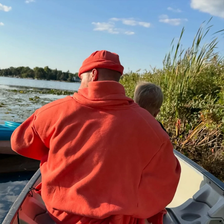 На снимке 31-летний Джастин позировал в лодке с сыном на руках, повернувшись спиной к фотографу. На фотографии не появилась жена Джастина Хейли, но, судя по всему, именно она сделала этот кадр.