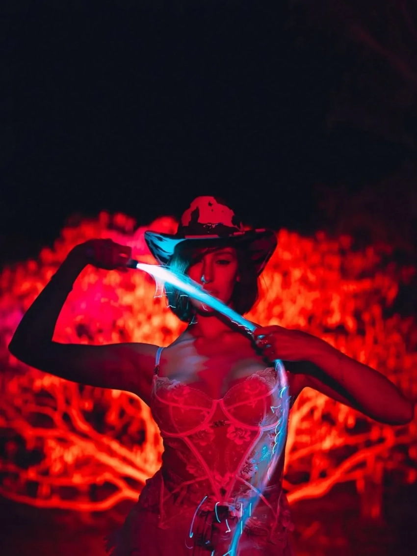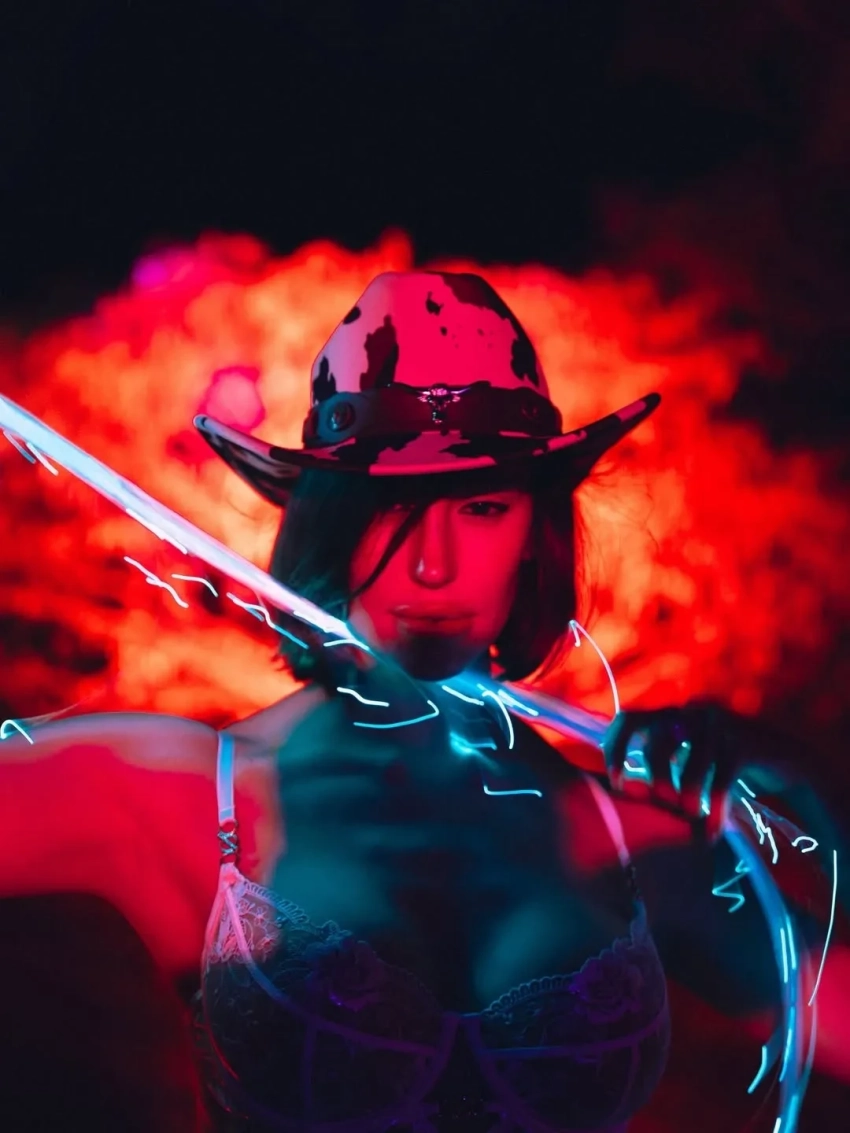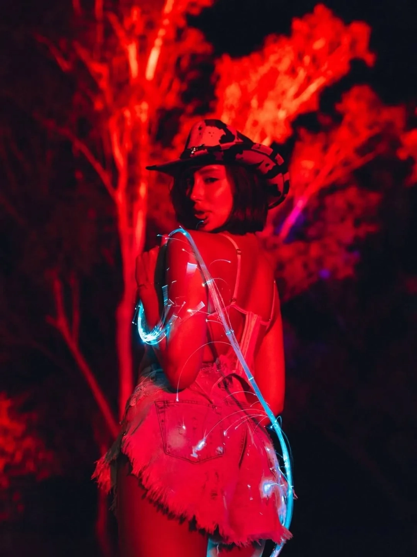 На снимках она предстала в ковбойской шляпе, кружевном корсете и мини-шортах, держа в руках светящийся “хлыст”. Подписчики Валентины восхитились её образом и фигурой: “Красавица, лучшая из всех женщин Тимати”, “Ну какая шикарная. Этот взгляд, стиль, очень красиво”.