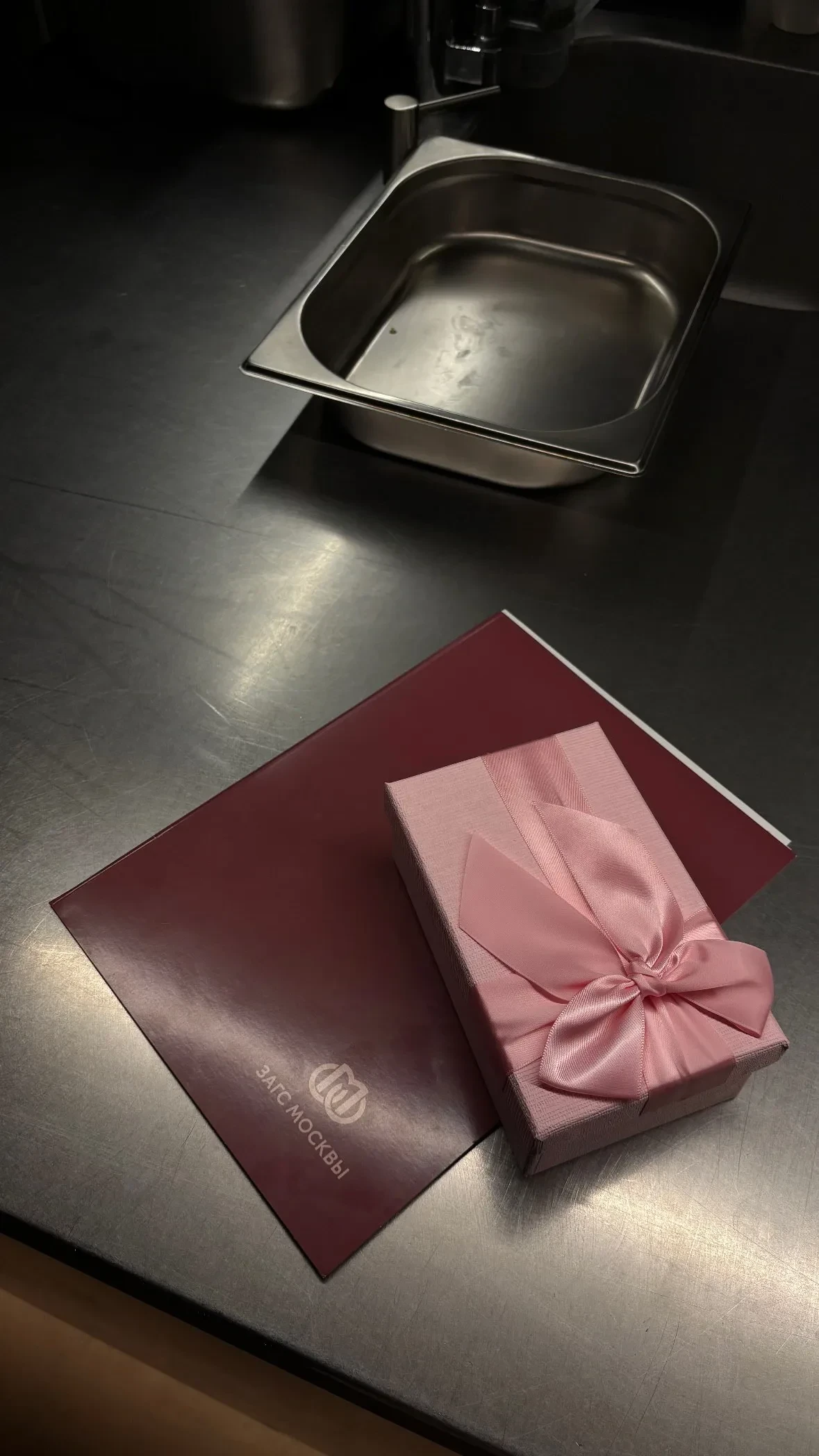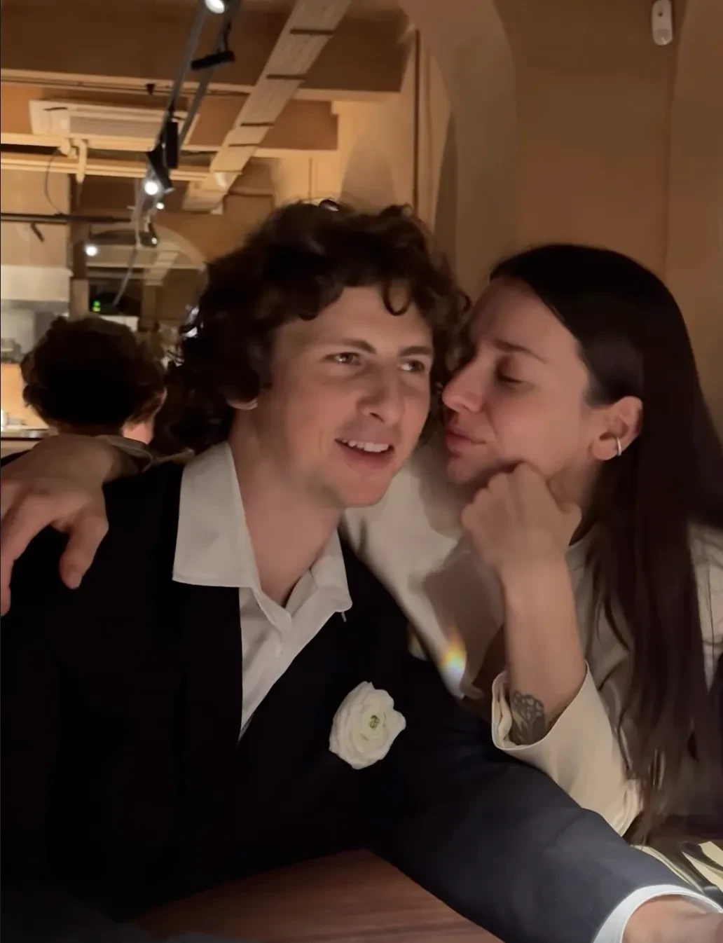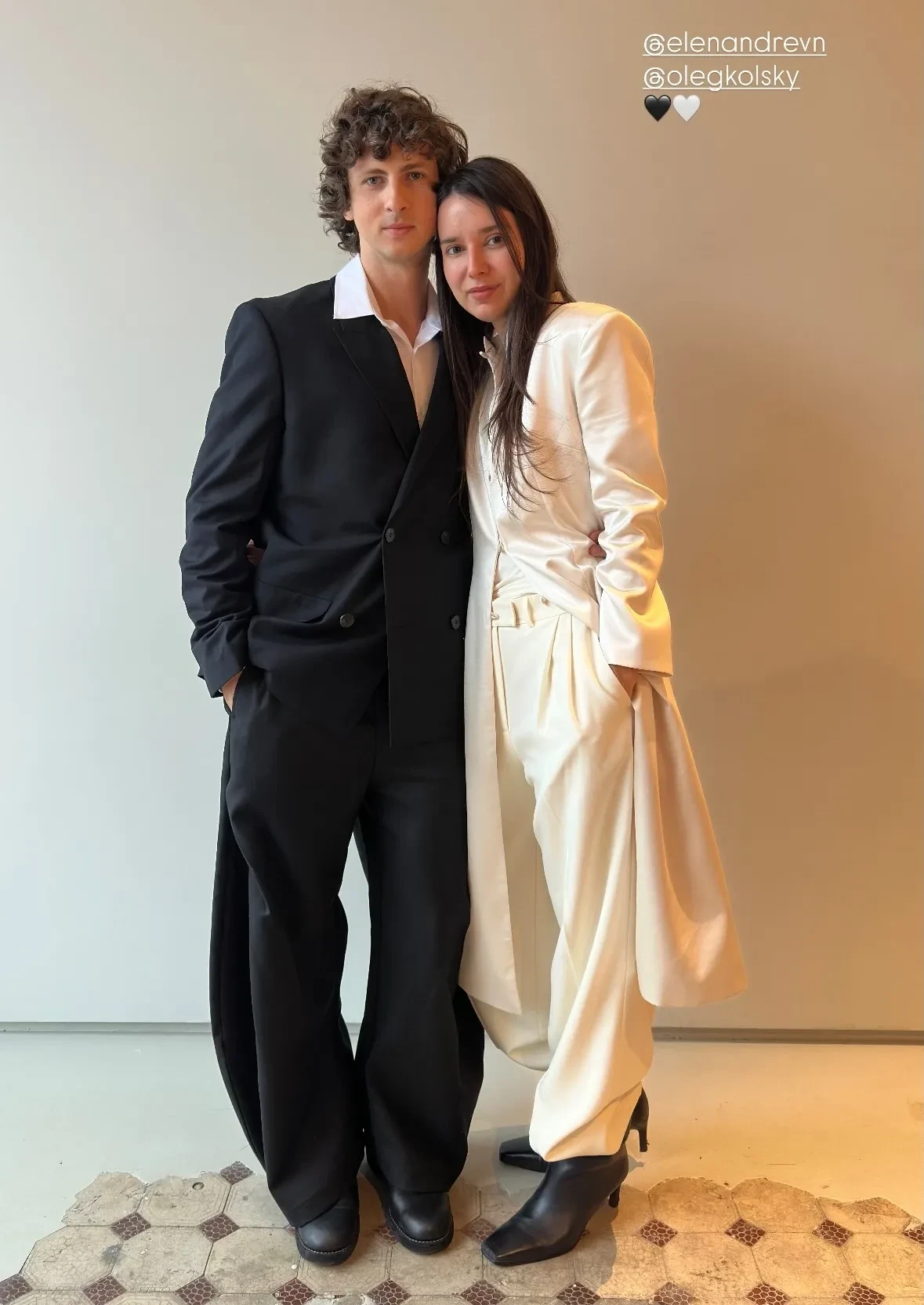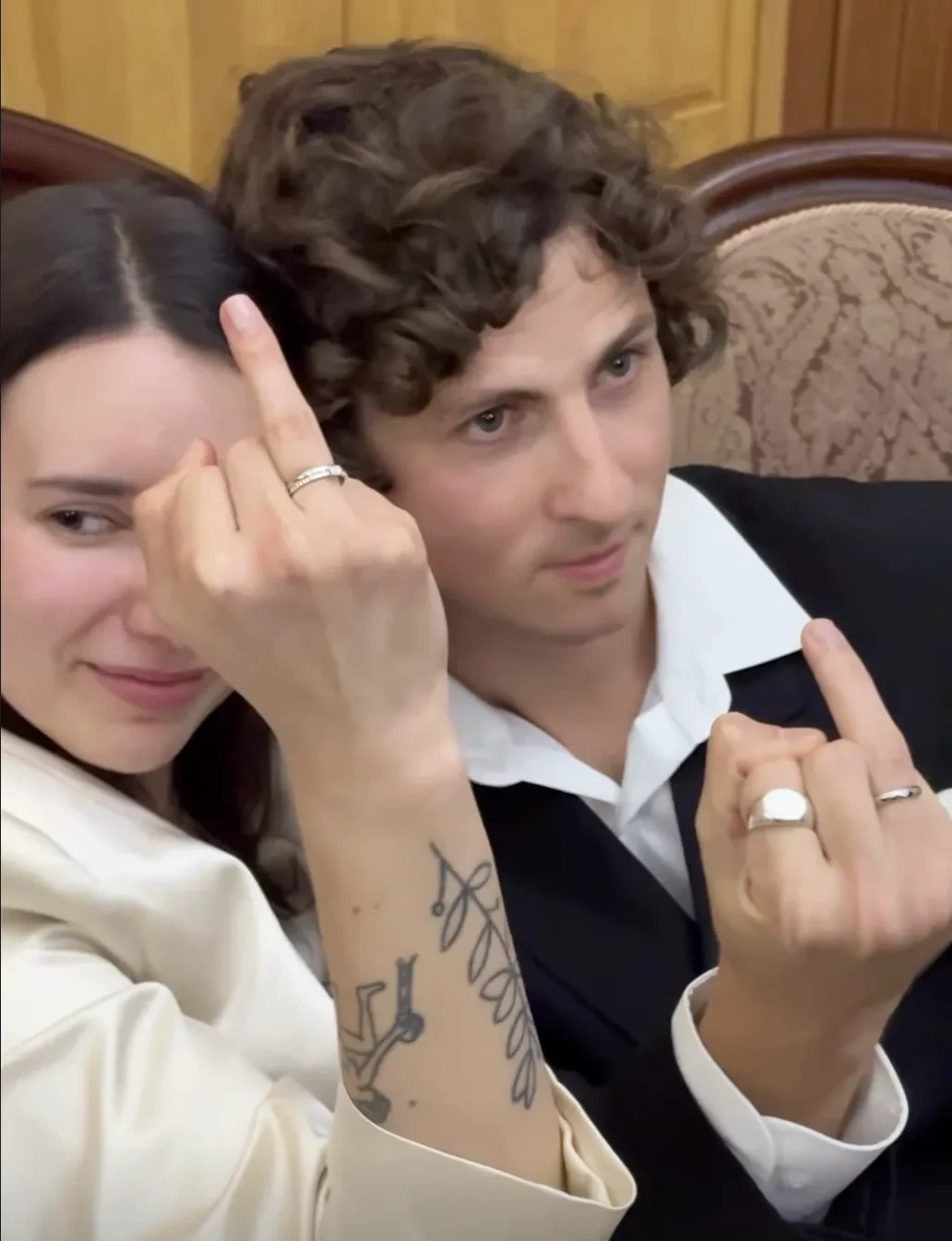 Пара поженилась в Дворце бракосочетания № 1 Москвы в присутствии друзей и близких. Невеста была одета в удлинённый жакет и брюки, а жених — в чёрный костюм. После церемонии молодожёны с гостями отметили свадьбу в ресторане.