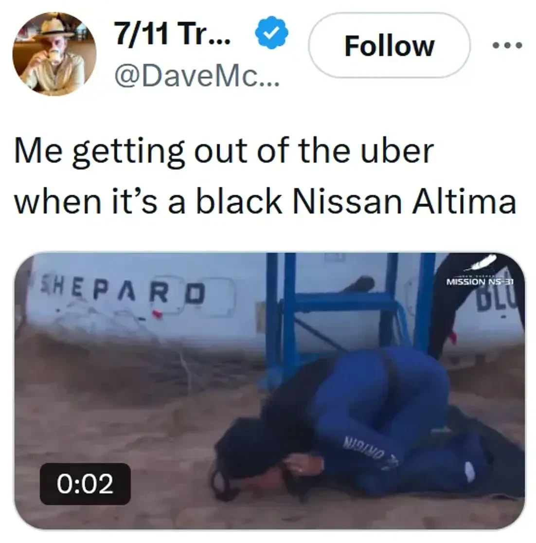 Одним селфи Мэттьюз не ограничилась и позже выложила в инстаграм* фото, на котором спародировала, как Кэти целовала землю после приземления.