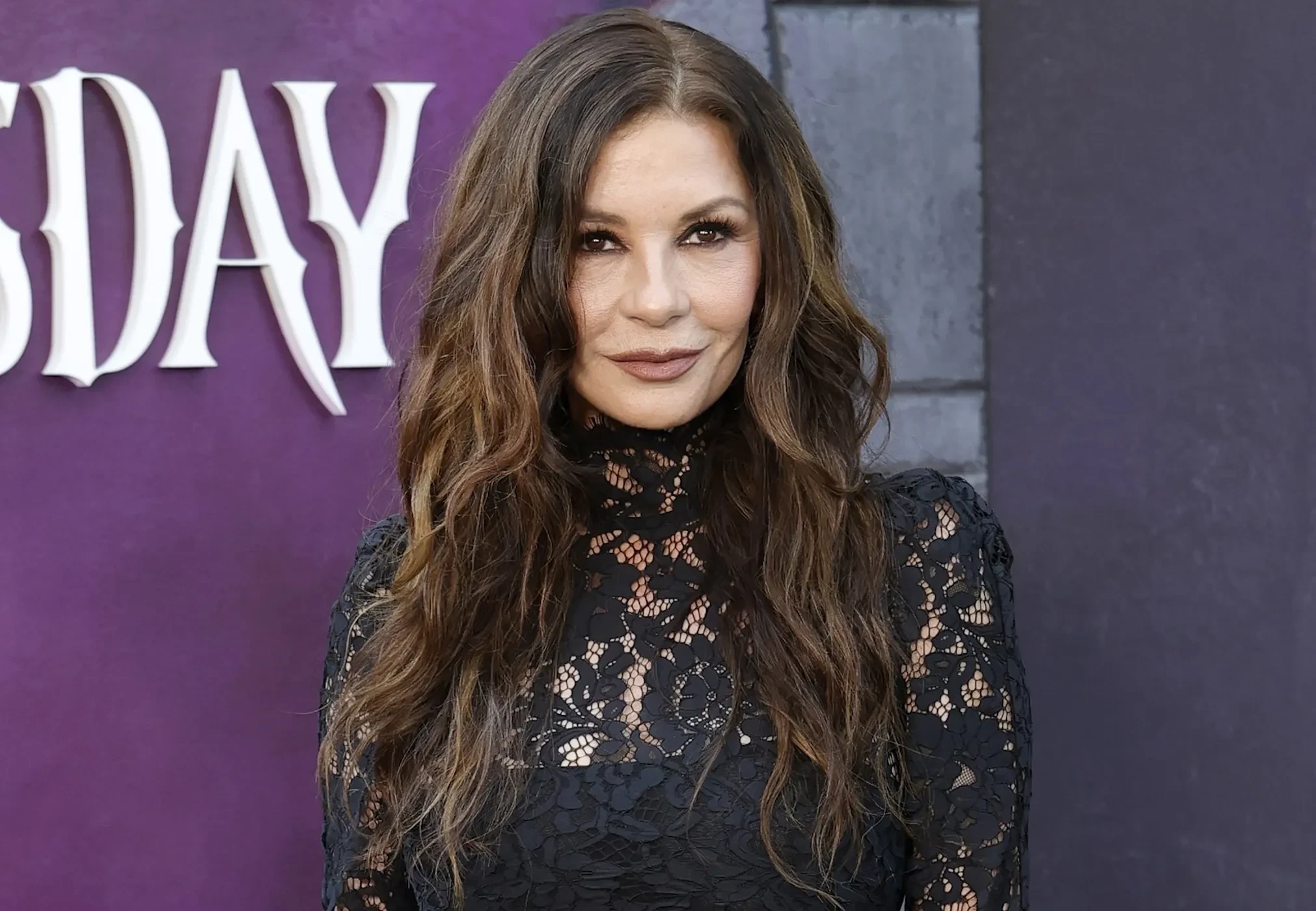 56-летняя Кэтрин Зета-Джонс вышла в свет в кружевном мини-платье
